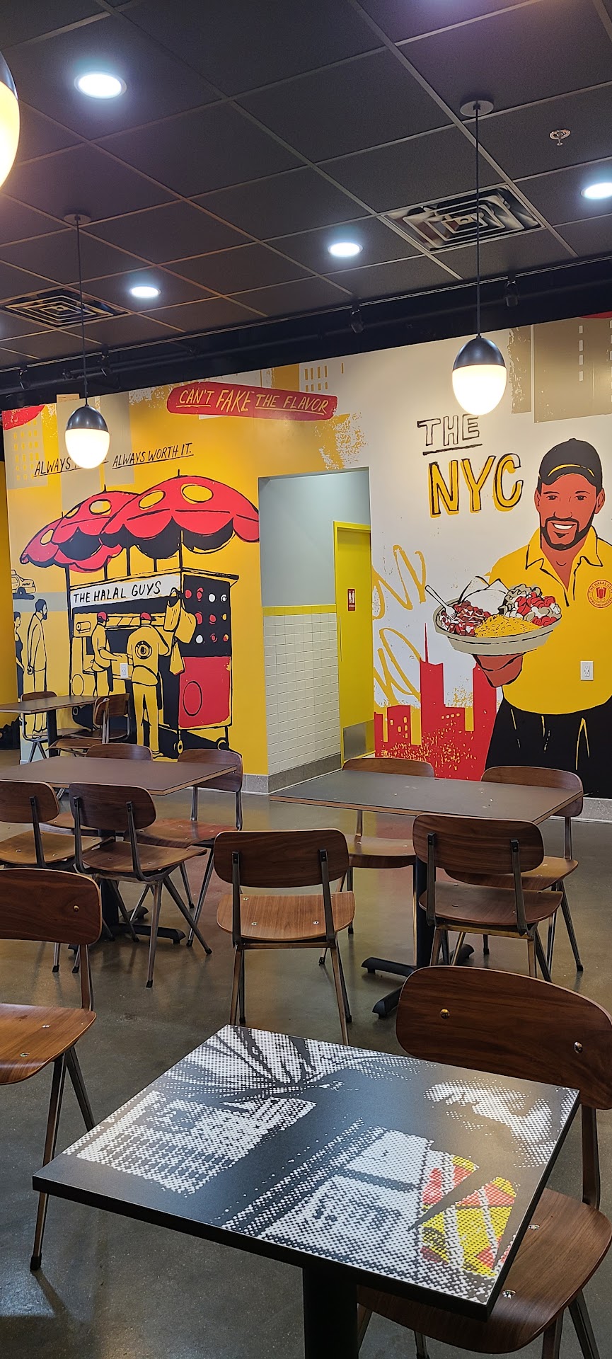 Read moreThe wait is finally over!!!! The line was out the door but surprisingly moved very quickly. We ordered two combo chicken-gyro platters and a gyro and for drinks we tried their Creamy Mango drink made with oat milk and the Mint Lemonade. What I loved was how fast they had our order ready. The chicken was flavorful and tender and the gyro was moist and we drenched our platters in their white sauce. I only added 9 drops of the hot sauce and made sure they were evenly spaced, lol. The end result was pure heaven. It brought back memories of the cart in NY when we first became addicted to Halal Guys. So the most important thing to me even more than the food is cleanliness. With the line constantly out the door I dreaded the trip to the bathroom. At 6:30 pm, I didn’t know what to expect. Much to my surprise, given the crowded store, it looked impeccable and smelled clean. It was comforting to know that they paid attention to all the details. The huge number of employees at the store front was probably how they are able to stay on top of everything. I rate them 5/5 for speed of order, cleanliness, and service...