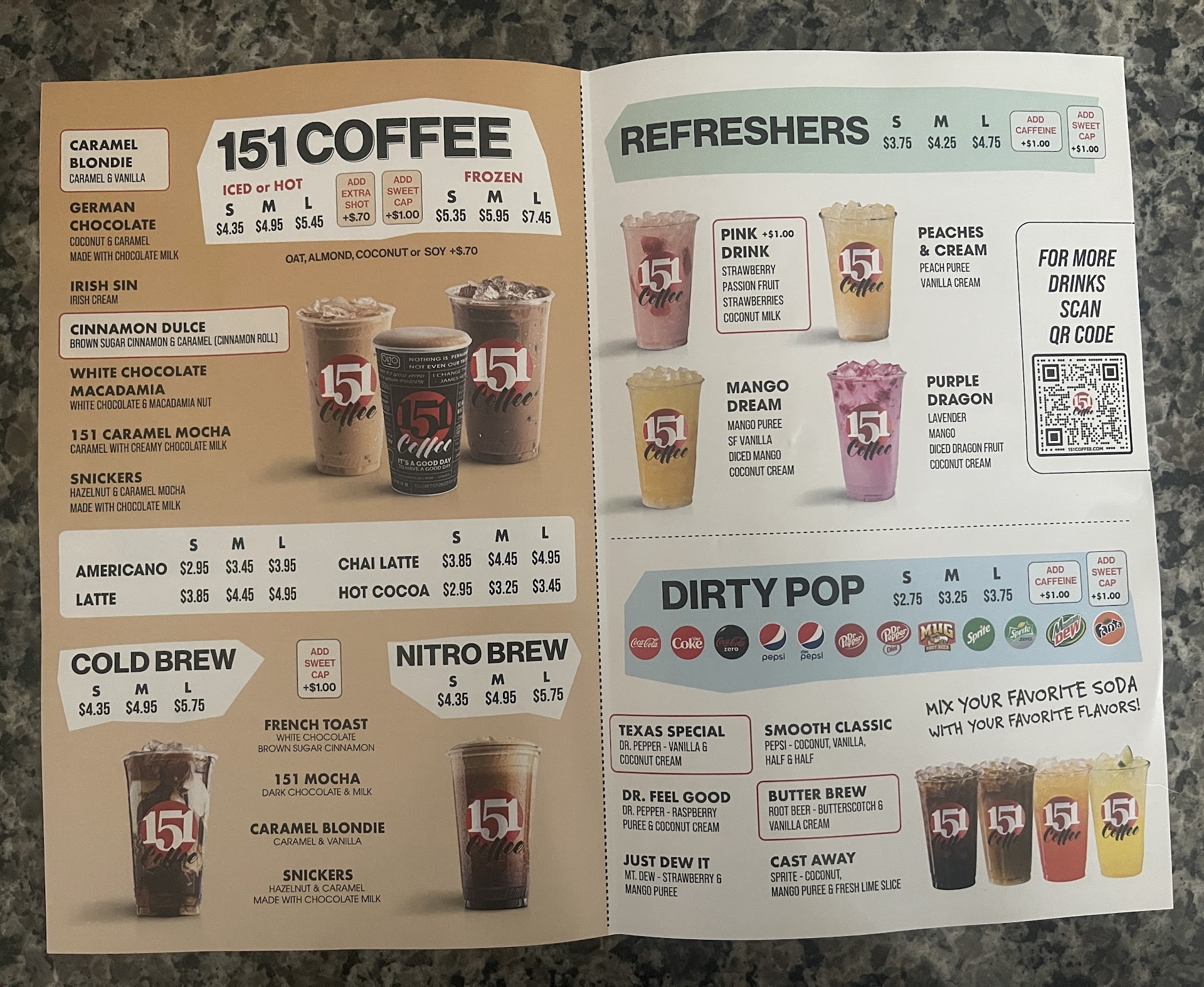And 151 has a ton of add-ins you can consider. Rather, there's so many that even the staff has trouble keeping track of all of them! 151 doesn't offer a true cappucino (ie, layered frothed AND foamed milk) but their lattes are decent and they'll happily try to make you up a faux cappucino on request.
