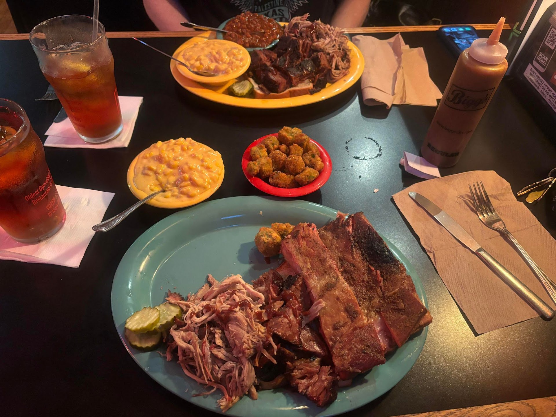 Read moreMy wife and I are huge BBQ fans. We’ve tried all of the amazing spots in KC and love the variety. Today we stopped into Bigg’s BBQ for the first time for lunch and we immediately fell in love with the place. It was before the lunch crowd so we beat the crowd. We were immediately seated by Doug, the owner. I would have never guessed that Doug is the owner had his picture not been in the front entry. He was polite and seemed to genuinely care about our dining experience. The atmosphere was nice. Everything was neat and clean. Even the background music was right on the spot. Our server, Arthur, was prompt and courteous. He gave us plenty of time and never rushed us. When we did make a decision, he was thorough and clear in his questions. While we were waiting for our meals, he even provided us with a small complementary sample of their amazing house fries. My wife had the burnt ends and pulled pork, cheesy corn bake, and BBQ beans. I had 3 bones of ribs, burnt ends, pulled pork, cheesy corn bake, and fried okra. We both had iced tea for drinks. Everything was perfect. I don’t use sauce (didn’t need it) but my wife said it was great and we would be getting some next time we come in. We both instantly fell for the Bigg’s Carolina Vinegar Sauce (“Better as it’s made in Kansas”). A unique flavor that would complement a variety of foods. If you factor in that we walked away with a full meal of leftovers (and a full bottle of Bigg’s Carolina Vinegar Sauce) by my math we spent less than $10.00 per meal. You can’t do fast food for that these days. The bottom line is that Bigg’s BBQ is a family-oriented restaurant run by a family (we met Doug, his wife, and his son) that gives you great portions of delicious food for a fair price. Don’t let the VERY few negative comments sway you. This is a 5-star BBQ place...