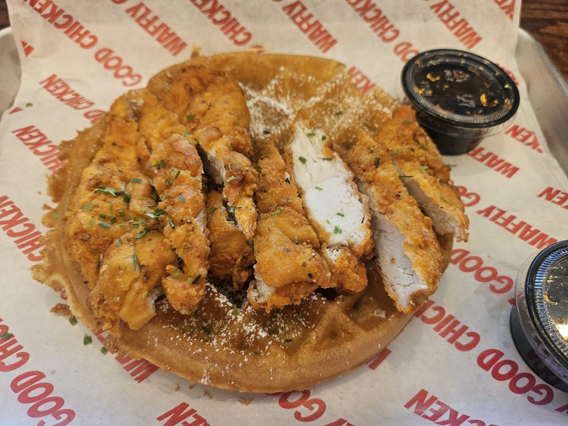Read moreI wanted to love this place. Maybe I came on a bad day but I need to leave an honest review of the food itself. I ordered a mix of items to try multiple things. The waffles, both Belgian and bubble were a 3/5 because they were tasty and the syrup was sweet but don’t keep well after a 10 minute drive home. They ended up soggy. The chicken strips were very large and juicy, taste was average I’d give them a 3.5/5. The mac and cheese was identical to stouffers, if not actually stouffers. 1/5 The chicken wings were supposed to be Nashville hot but had no sauce on them and were overcooked, TINY, shriveled up bones with feathers and dry meat on them. They firmly get 0/5 stars and look around to see if I was being punked. The frozen lemonade tasted watered down and gets a 2/5. Overall, the food was pretty awful but the customer service was A+ amazing and the place was sparkling clean. The story on the wall about how they got started was nice, I stopped the read the entire thing, but find myself wondering if the founders know how bad the food is coming out of their kitchen. If they see this, they need to send in a secret shopper and order what I got and see...
