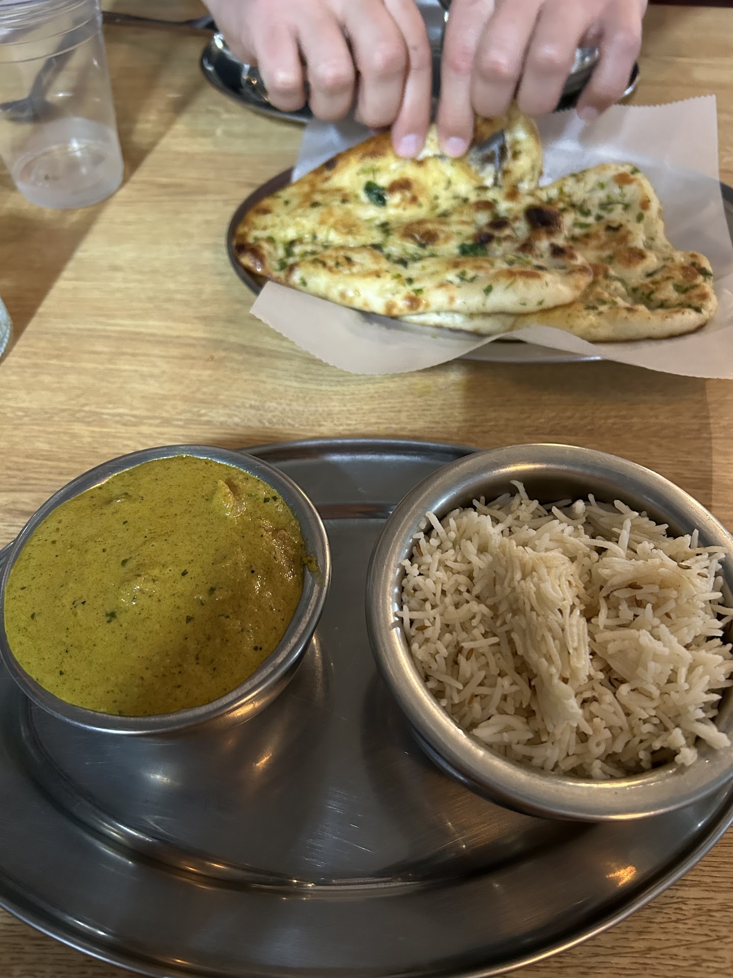 The food they serve is overpriced boxed and canned food that they sell in the grocery store, which they clearly microwave and sell as “fresh” and “handmade”. There is nothing fresh or quality about the food they serve. I spent $80 on what was supposed to be a special dinner for my partner and I for food that wasn’t even edible. It was worse than school cafeteria food - the 5 star reviews are fake friends. Learn from my mistake and take your business elsewhere. The bindi was a disgusting glob of mushy, brown, clearly frozen and microwaved okra that was totally flavorless except a strange sour taste. It tasted and looked weeks old and bad. My partner said his chicken dish tasted like those cheap cans of stew from the $1 store. The naan was clearly reheated from the frozen bags they sell, and were served hard, cold and plain (despite ordering the butter and garlic). The samosas were soggy and the filling seems to have been scooped up from some old dish they needed to throw out. I have never asked to return food, but this was so over the top, obviously bad food that I called and asked if I could return for a refund. The owner argued with me, implying I was lying and saying “it can’t all be bad” (it was) and refused to give a refund or do anything to make it right. I was a fan of this place for the grocery store, before, and never left without spending less than $50. After this experience I will never go back, and warn others not to be duped into spending your hard earned money on the boxed food they sell and then reheat in their restaurant and pass off as “fresh”. This is the worst food I’ve ever been served at a restaurant (and I’m including fast food). Go to one of the Indian places downtown. The prices are the same, and they aren’t selling reheated food from cans and boxes. The owner had an opportunity to keep a loyal costumer by allowing us to return our uneaten food for a refund or credit. But the food is in the trash where it belongs. With such deceptive and unethical business practices, they should be shut down