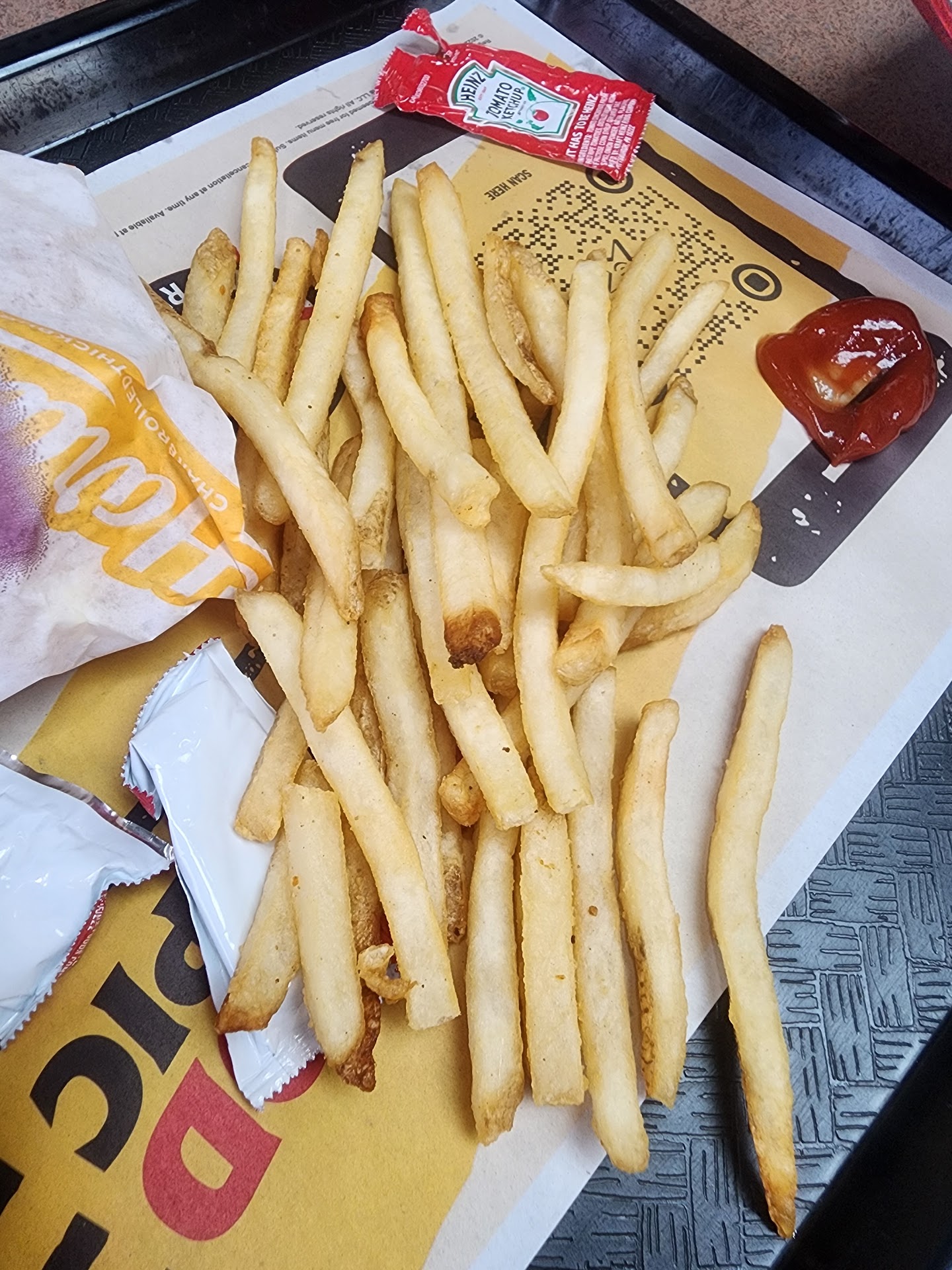 In addition to the burger, I also enjoyed their crispy, golden fries, which were seasoned just right. The meal was complemented by a refreshing, ice-cold beverage, making it a perfect combo.