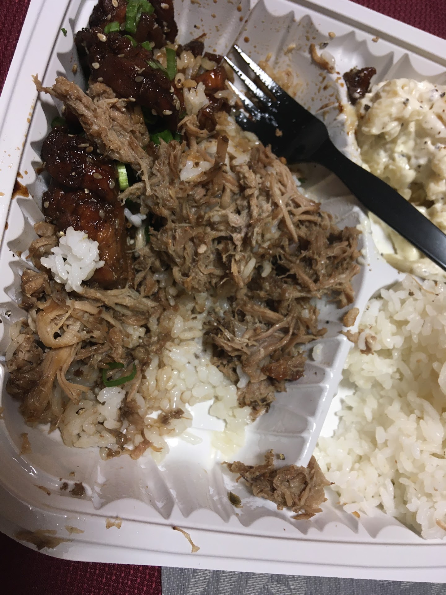I woke up in this place without any memory of getting here, and I already had a bowl of food in front of me. Despite seeing what I can only assume was a blood thirsty entity outside of the front window calling my name and beckoning me to come outside, the general atmosphere INSIDE the store was very welcoming. I finished my meal and at the bottom of the food container there was a time and date written in barbecue sauce, which doesn't make much sense since I didn't have any barbecue sauce in my meal. I'm pretty sure that it's supposed to be the day I die, but I don't know because there was no further information. When I looked back out of the window, the entity was gone and I felt safe enough to return to my car, but as I was about to leave a small man walked out of the bathrooms and whispered "It's after you now, good luck." Besides the ominous messages and unrelated threats to my safety, I'm going to be returning to have more meals at this Hawaiian Bros until my untimely fate on June 7th, 2028. Food was...