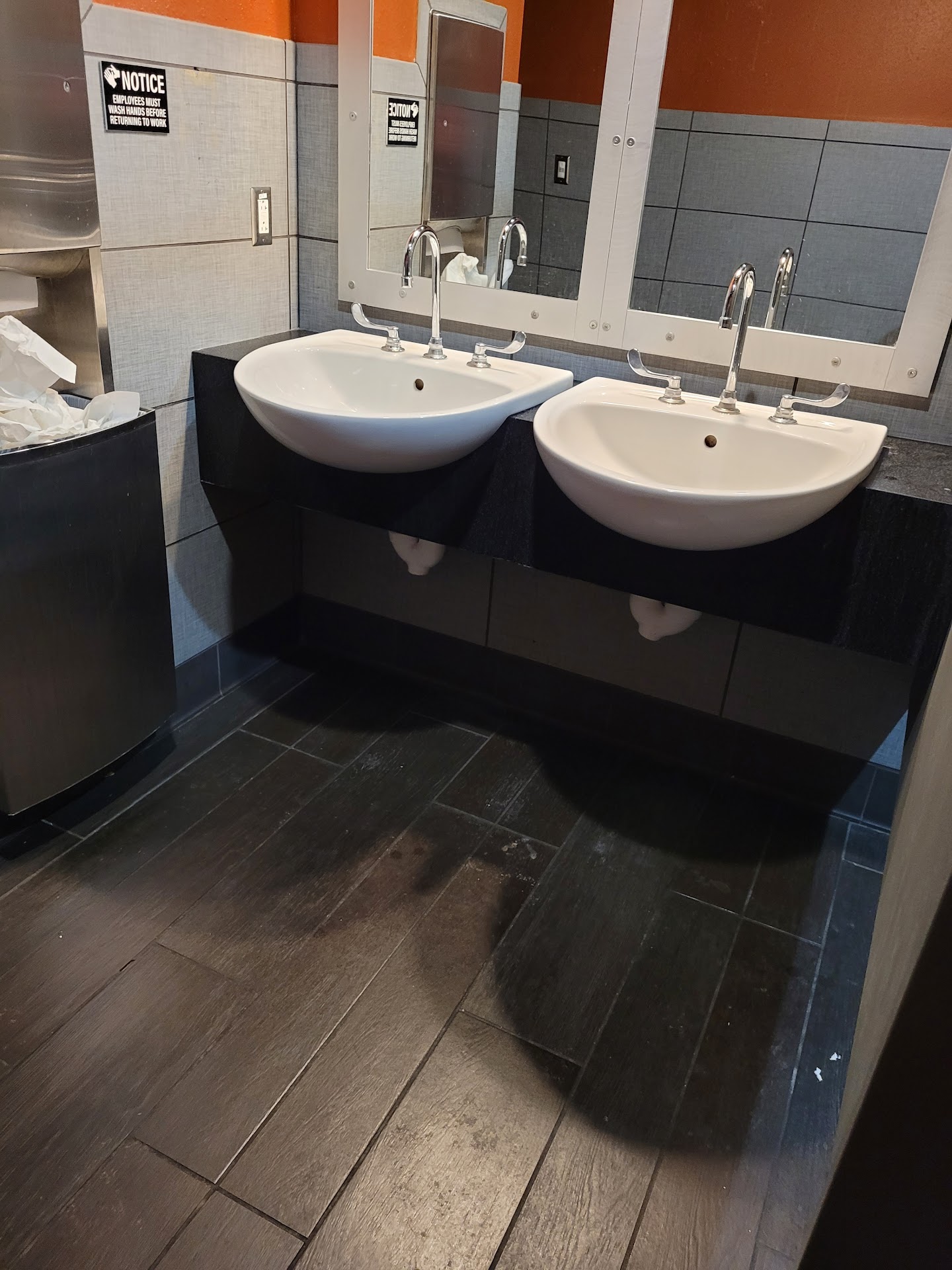 Most recent visit was around lunch time, the dining room was a little over half full and they were pretty busy. We were fairly low maintenance, just needed water and the check really. Our server seemed nice enough but she put straws in all of our drinks without asking, later saw her in the kitchen putting food in her mouth with her fingers. Could also see employees drinks sitting on prep surfaces as well as a bag of chicken left out, presumably to thaw at room temperature for who knows how long.