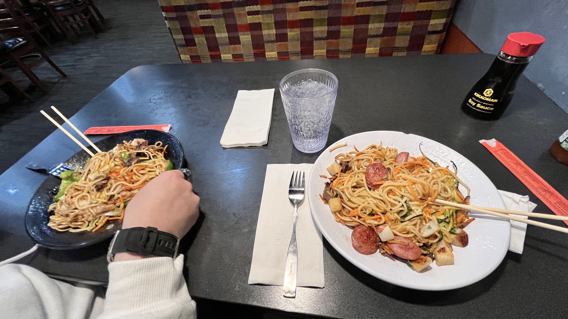 There were no gloves available at the line and some of the plates were sticky and/or oily. Cooks didn’t have their usual sense of urgency, they were letting multiple guest’s dishes burn onto the grill and then pouring water on them to compensate. They were also sloshing the char water onto the other grill food when cleaning. The manager came out a few times to wipe some tables down but mostly just watched the dining room with his hands in his pockets.