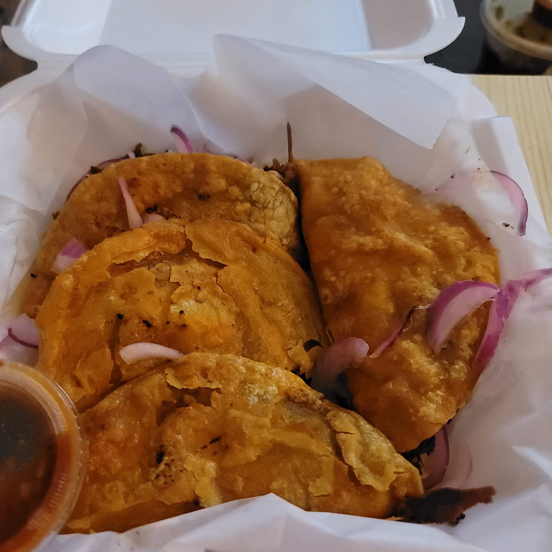 ordered the birria quesadilla and when I got it I thought they just gave me tacos. but it indeed have cheese in it and a generous amount of meat with pickled onions. it was just so good. it's messy to eat but so worth it and the soup they give you to dip the tacos in is also very generous. I like to add some Limon to it and drink the rest while it's hot. the menu options are very good and I can't wait to try more but those bittia quesadillas were just so good idk when I'll get around to trying more of their menu.
