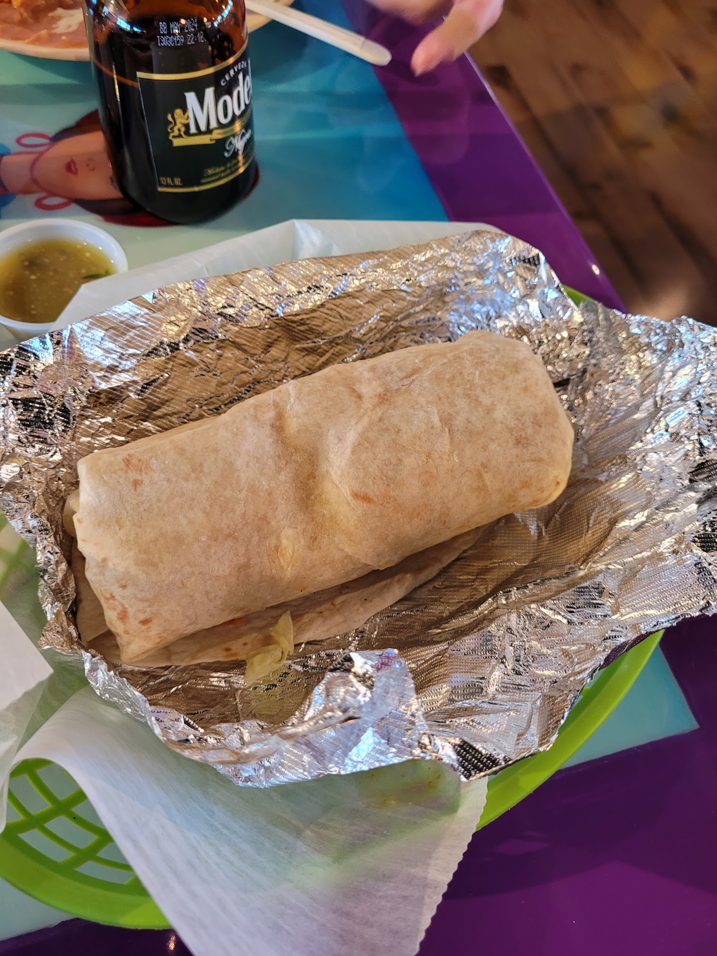 I haven't been to the new place so while tooling around 23rd street, hubby and I popped in. First, it's much, much larger than the former place. Second, it's a colorful layout. The counter's in the rear and you order your food like before but they bring it out to you. Finally, the beer selection is more extensive and they keep an opener by the cash register for your use (I find this very whimsical and cool). We sat at a table painted in vibrant tropical colors with chairs to match. Our food was brought to us. Ok, the food. THE FOOD!!!!!! I ordered 2 Carne tacos which came on corn tortillas, onions and cilantro. Also ordered the no Carne burrito which is huge and is filled with rice and refried beans. I purposely ordered too much food so I'd have leftovers because thats how much I love this food. The Carne was incredibly tender and seasoned just perfectly with a bit of a bite. The onions and cilantro rounded out the entire taco experience. Just freaking delicious. My burrito had a bit more rice than I liked so next time I'll request poquito arroz. Nonetheless, it was a generous burrito and very appetizing. The refried beans were a bit tangy melded with the seasoned rice. Pretty darn good. The salsas I will warn you are muy caliente but dang, they're fantastic. The burn is worth it as it disappears and doesn't leave that "hot taste" in your mouth. Hubby had chicken tamales and I swear I've never, ever seen hubby clear a plate that quick. I'm still a bit peeved he didn't share. He proclaimed the two tamales absolutely delicious! I will have to order those next time and WILL NOT SHARE with hubby. If I could give this place more stars I would. The food is definitely the best Mexican food in larryville. The ambience is ok, mostly because the TV was blasting a soccer game. Service was quick and efficient. The staff doesn't have alot of people who speak English but they get the job done well. It's clean and BTW, you bus your table yourself. There's a market downstairs which I didn't check out. I'll rectify that next visit. And yes, there will be a next visit and relatively soon. You see, hubby dropped my leftover box in the parking lot. So, I'll fill you in on...