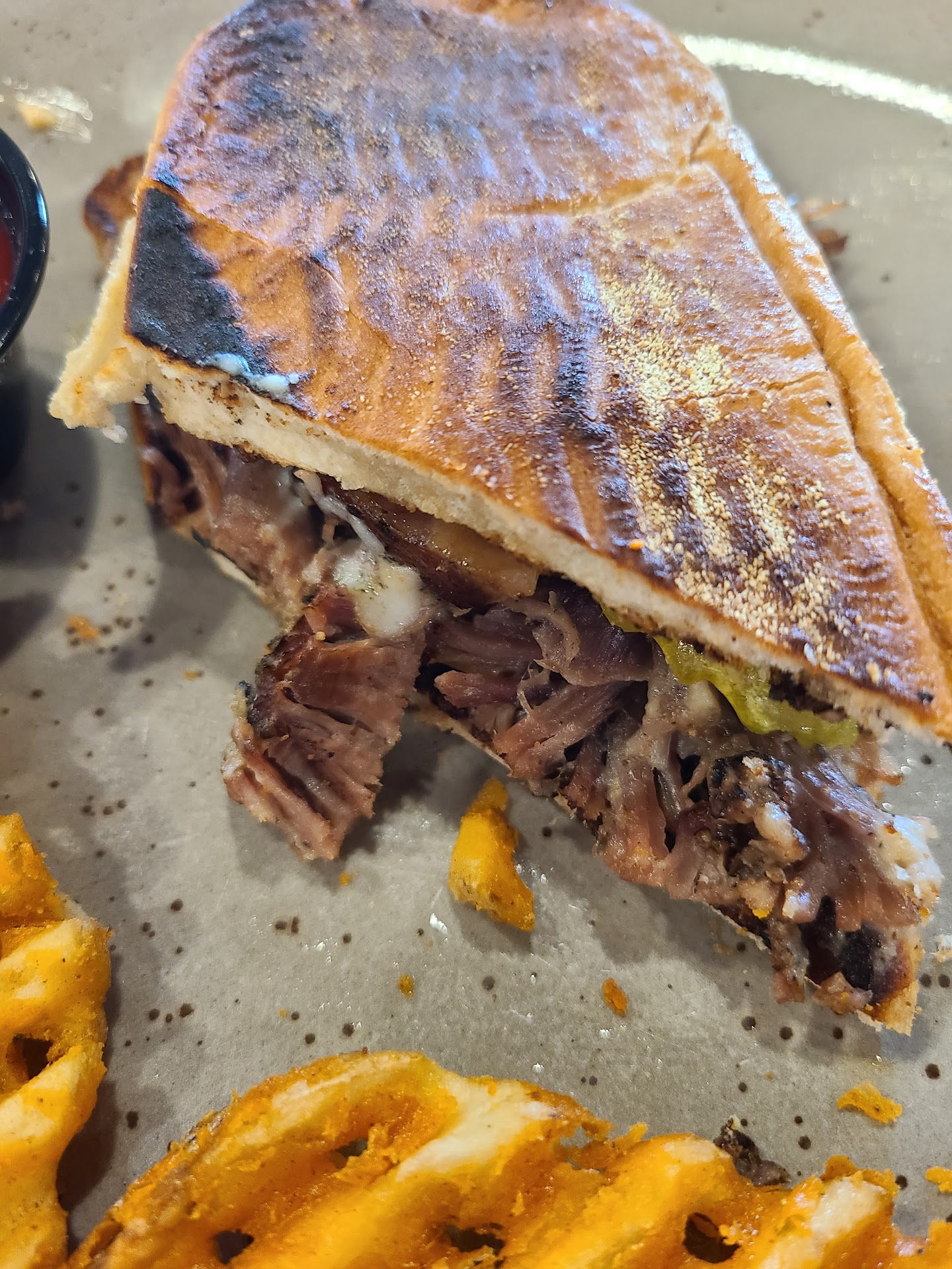 I initially asked for BBQ sauce after getting the sandwich because it looked like there was none on there... only to be dismayed when I realized what they now considered "BBQ" sauce was already on the sandwich and was awful. Oh, and I got charged $1 extra for the "BBQ" sauce on the side - which our waitress did not mention at the time of ordering and there was no pricing for "side sauces" on the menu - for a tiny portion.