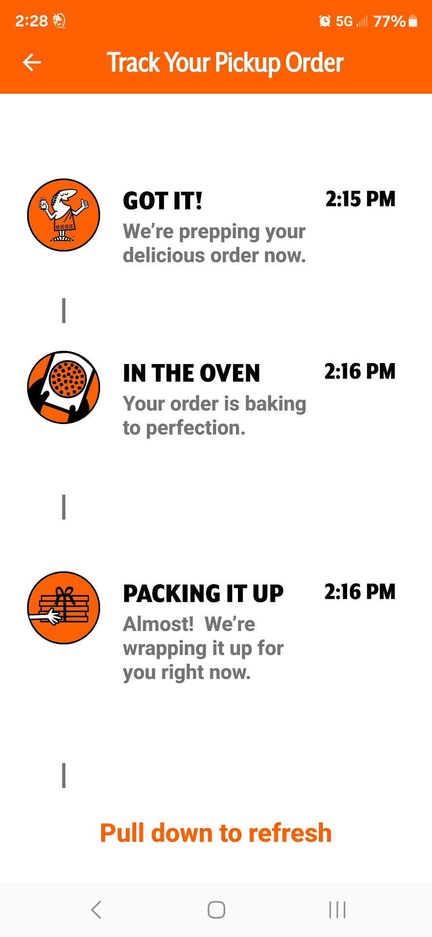 The service at this location was nothing short of abysmal. I waited, along with eight to ten other customers, while the employees in this location took order after order that they were unable to fulfill. The staff were not following proper food safety protocols, including not using gloves while handling food and not washing hands after utilizing the cash register. In addition, the staff continued to state that my order (and everyone else's) would be done in a minute and they would let us know......45 minutes after arriving, 35 minutes after the time I had pre-selected for pickup, and 10 minutes after I had already left the restaurant, I received this notification.