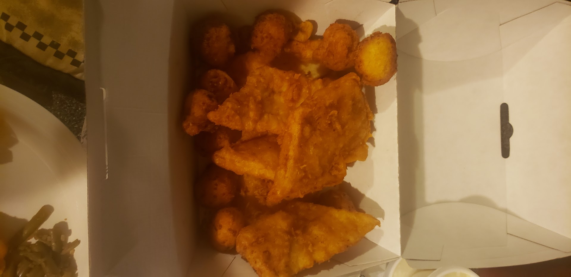 We were on our way to go camping and needed something for the trip because we had not eaten yet that day. I ordered fish tacos and some sort of a platter which was supposed to have fish and chicken and fries and whatever else. I didn't realize that it would look the way that it would look. The fish was delicious although maybe a little bit too crunchy. The chicken was dry and you can tell that everything had been sitting under a heat lamp for quite a long time. It didn't taste fresh. The french fries were too hard also the result of having sat around for a little bit too long. And my fish tacos came in hoagie buns which.. that's not a taco y'all.