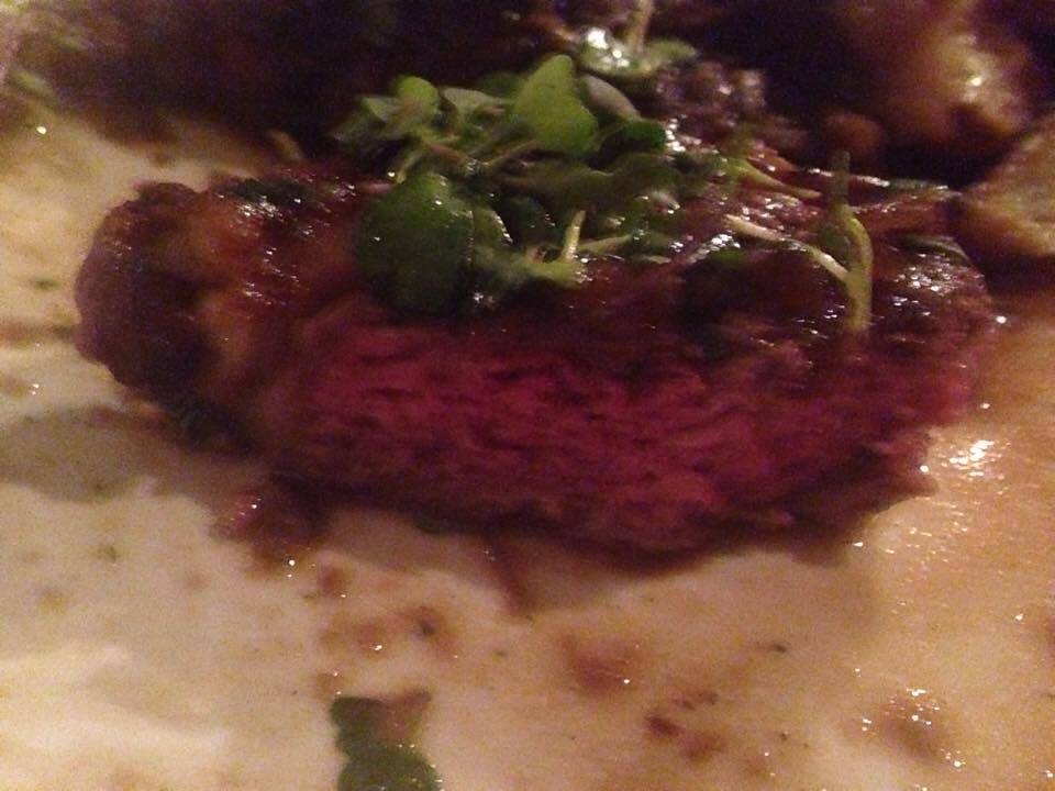 First of all, our server, Devin, was very good, quite attentive, and the highlight of the meal. The atmosphere is also warm and inviting, even if we were in the nosebleed section. However, I got the impression that the chef in particular or the establishment in general are trying a bit too hard to be trendy and "gourmet", pulling it off on some occasions (the steak sauce and the dessert) and not on others (the pasta and undercooked steak). The prices are not exorbitant, but when you drop a C-note for dinner, it should be closer to flawless than we experienced at Merchants (e.g. my raw steak).