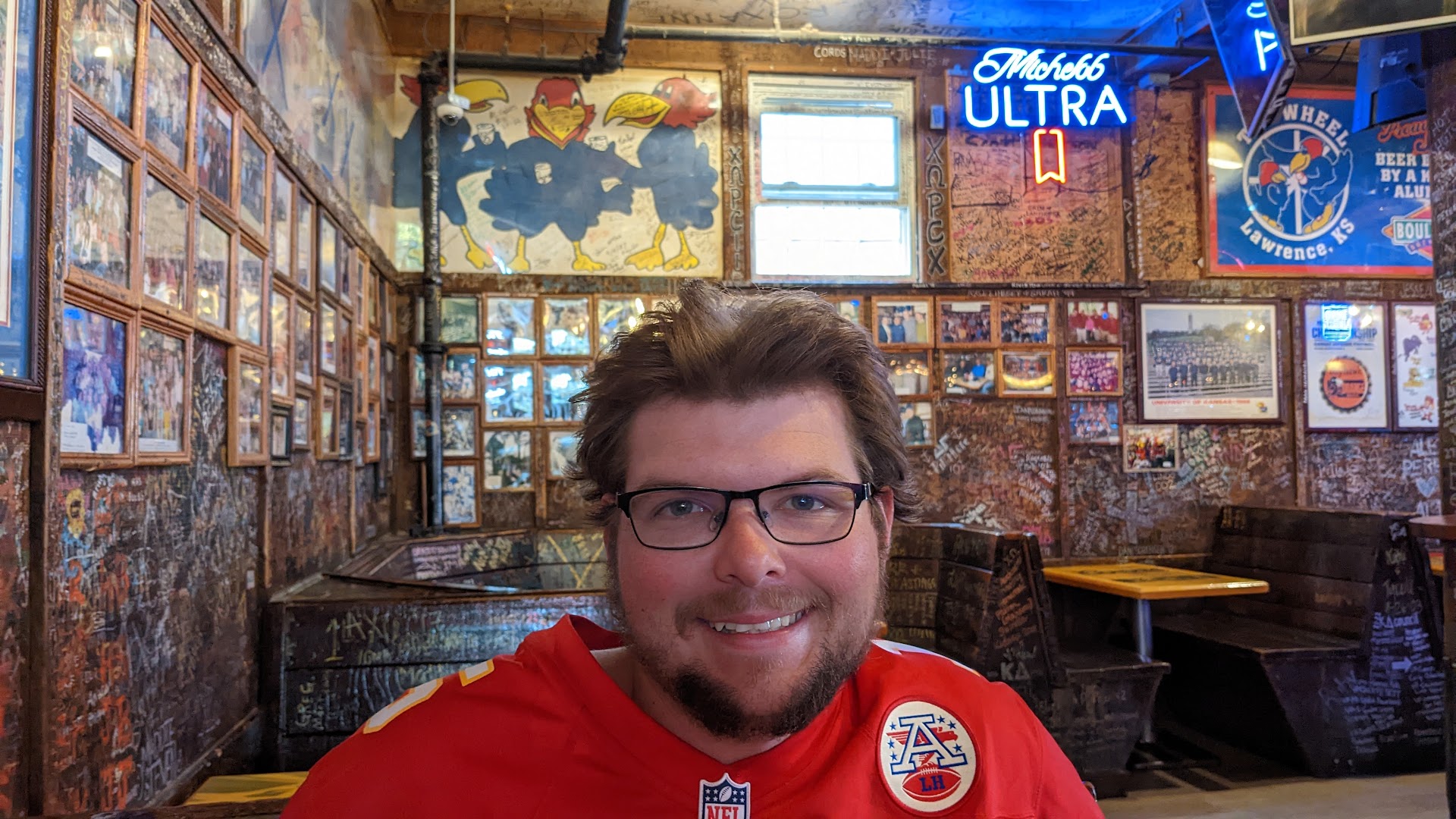 Read moreHad the nicest time. Nephew and I both got the mighty Wang Burger and a bloody Mary and a beer. We got to meet the owner and congratulate him on 25 successful years. Never feel bad about having drinks in cans here because every night he lets a guy come and pick up all the empty cans and recycle them. We had a beautiful waitress with long blonde hair who looked like a princess but acted like a helpful nice person. It was the nicest outing we had had in a long time and we are so glad we chose KU's/Lawrence's one and only...