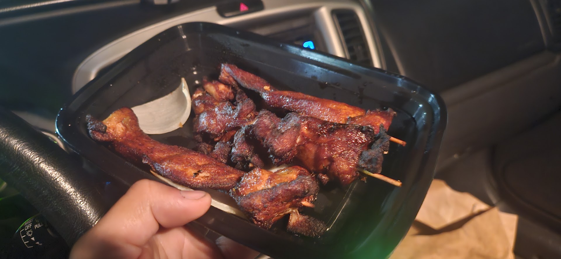 My fiance made it there before I did, grabbed my food, met me in the Ace parking lot, gave me the bag and said;