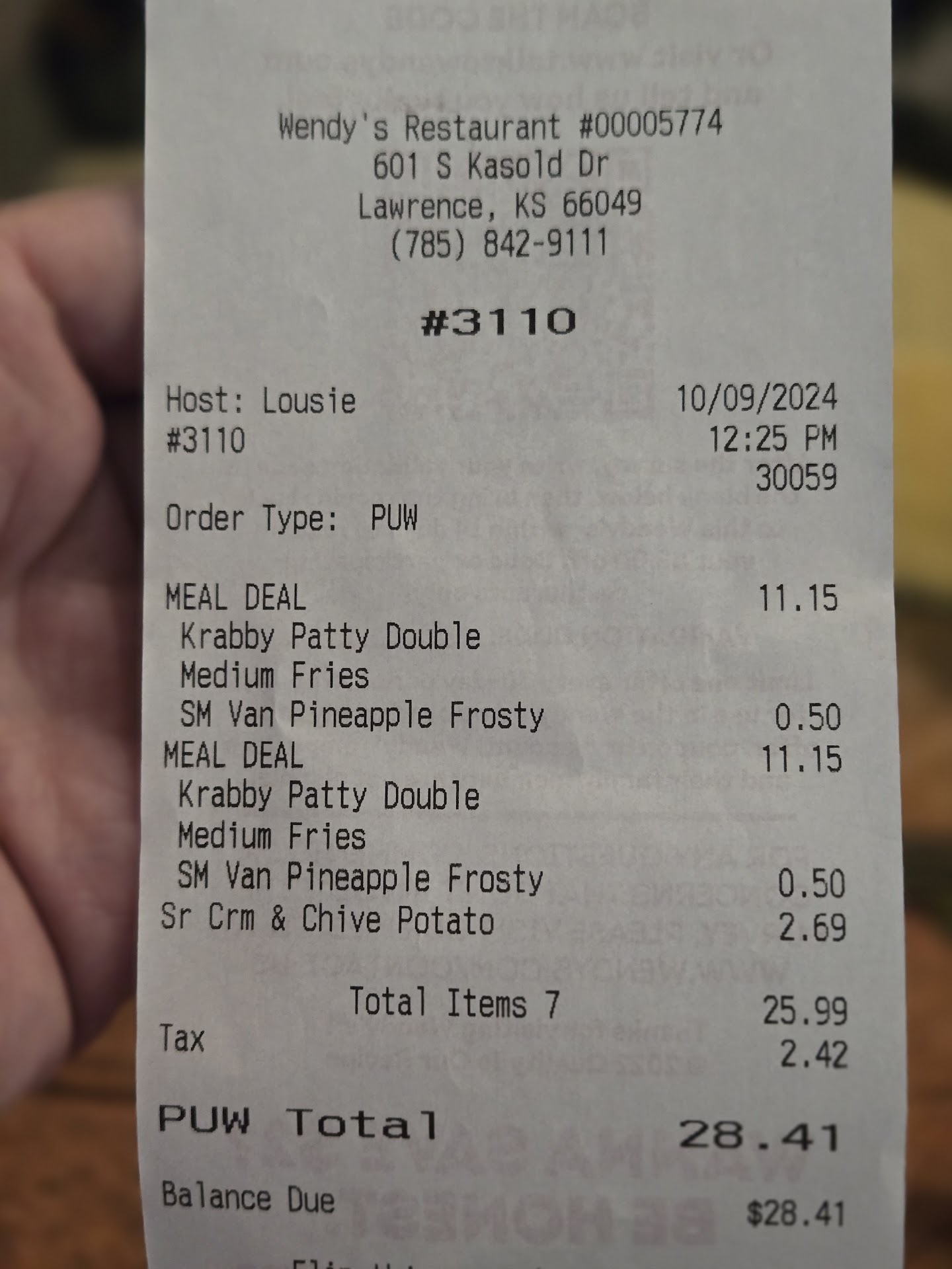 I'll be upfront: I personally prefer the 6th Street Wendy's location to the one on 23rd Street here in Lawrence, KS. But today, I was faced with a dilemma of sorts. I had placed a mobile order and opted for the drive-thru pickup, expecting a quick and seamless transaction (at 6th St). When I pulled up to the window, I gave them my name for the mobile order. While waiting, I thought, "Why not grab a small frosty?" I politely asked if I could add one to my order. I was genuinely taken aback by the response from the man at the window: "I can't do that." My immediate thought was, "Why?" Then, a young woman behind him chimed in, explaining they'd just had a meeting that morning (6/18) and wouldn't be taking last-minute orders at the window. I glanced in my review mirror – only one car was still at the ordering station. The time was 1:10 PM. This wasn't the peak lunch rush. I calmly pointed out that by the time she finished explaining all of that, I could have easily paid for and received that small frosty. More words were exchanged, and frankly, her attitude showed poor business acumen. I told her I do lots of reviews, and I would certainly be doing one for this location. When I mistakenly referred to the manager by the wrong name, she curtly corrected me, adding that the manager, Martyn (maybe spelt wrong), was her mother. Common sense seemed to be missing in that moment. It wasn't the lunch rush, it was 1:10 PM, and there was just one car still ordering while I was still waiting for my mobile order, and after all the back and forth drama. Instead of finding a solution, she simply shrugged and began talking to her coworkers. This was far from professional and left a genuinely bad taste in my mouth. It reflects poorly not just on her, but on the restaurant and on the manager, Martyn, her own mother. All I wanted was a small frosty – one of the new ones, just to try it. There was more than enough time; they would have made another sale and, more importantly, created one happy customer. In the end, I called the home office customer service number as indicated in the app and expressed my concerns too. Not that I was expecting anything, but I was passively given one for a FREE ANY SIZE FROSTY. I...