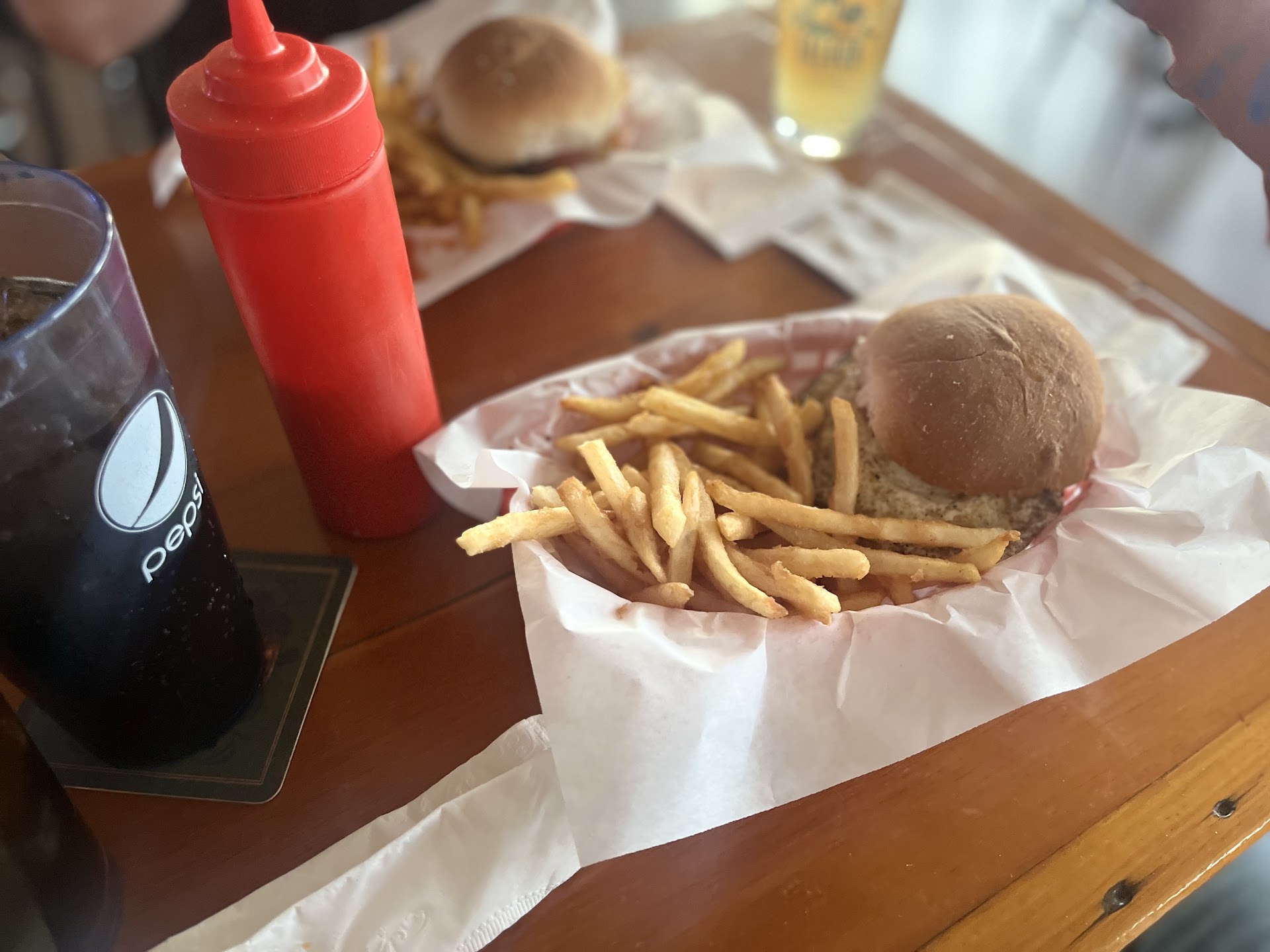 Apparently, there is a really good secret Philly Cheese Steak that isn't on the menu, but since this was our first visit we knew we had to get the classic burger and fries. We also shared an order of fried mushrooms. Everything was hot off the line. The mushrooms were too hot to eat at first, but once they cooled down a little, they were perfect with some ranch.