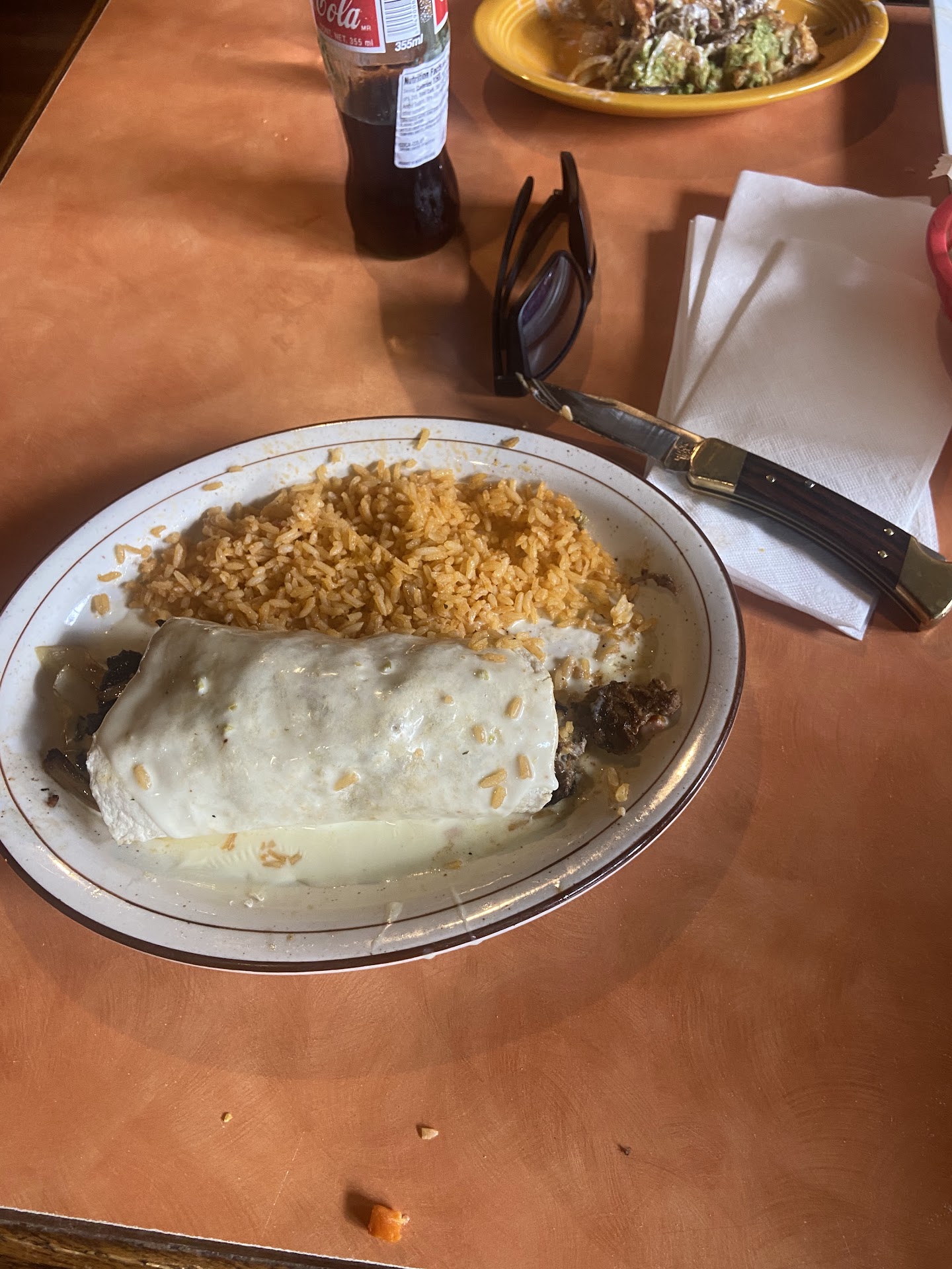 Read moreA one star rating is generous… The whole experience was terrible! We came with as a large party - we had 3 servers who clearly were not communicating with each other. Every two minutes a server was asking are you ready, when we were ordering the three servers were bouncing around between everyone. It was loud and chaotic. My margarita was literally peach juice/syrup… it was disgusting. When they started serving our food the servers were just yelling “rice, chicken, fries”. The servers got mad as us when they brought the wrong dishes to our table- no one ordered fries but yet 3 plates kept coming out. Everyone was served except one person who had to ask for her meal… the chicken was literally flavorless and pale while. Huge globs of cheese on plates… portions were inconsistent and not worth the prices. We ordered churros to go and they were shoved on the table on plates. They were hot on the outside but raw on the inside… while we were still eating our meals the servers started clearing the table, scrapping plates onto other plates in front of us. We felt rushed and as if we were annoying to the servers. We couldn’t enjoy each other’s company or even our meal. SKIP THIS PLACE-...