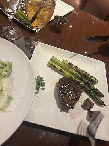I feel honest reviews are what help restaurants in the end, and I enjoy giving praise when due, criticism when necessary. Wife and I stopped by for dinner on a Saturday. We were seated quickly and greeted by Danny and our waitress Heather. The service throughout the night was great, and both took care of us, so no complaints there. First thing I noticed was no background music. The music did eventually come on halfway through the meal, but the first half we could hear every conversation in the whole place. Not a big deal, but figured it worth a mention. The food and drink is where it gets rocky. The cesear salad was good, dressing is spot on, but it was swimming in dressing. Espresso martini almost ruined the whole evening after one sip it was more of a vodka flavored chocolate milk, and thankfully my wife's stomach recovered after a glass of water. We chose the 8oz filet with the Oscar style lobster topper, and the potato au gratin to share for our meal. We wanted to keep it simple for the evening and didn't want to over do it on food. When the steak arrived it was on a large plate with a sprig of rosemary on top, and accompanied by a side plate of chopped lobster and what appeared to be beranise. I expected a lobster topper, but after tossing the rosemary aside and dumping my lobster beranise on I could finally get down to business lol. The steak temp was good med rare liked we asked, but it seems like the grill wasn't cleaned before grilling it so the burnt crust on the outside overpowered everything. The beranise was very thin almost broken and cold. The lobster was also cold and chewy. Overall it was edible which we did eat half. The potato au gratin was a massive solid casserole square on a plate.Cutting in to this firm starch casserole I knew right away it wasn't hot but just warm. The cheese was solid on top and all though the flavor was ok, it wasn't left in the oven long enough. For desert we had a creme brulee, coffee and espresso all which were excellent. Creme brulee was silky smooth and had a great flavor. The strawberry whipped cream garnish didn't seem necessary but none the less looked ok. I think overall the food could have been much better if the chefs had upheld some standards. Corners were cut and it showed, all simple technique and quality standards could have avoided everything I mentioned. The restaurant wasn't packed so I know they weren't in the weeds, and could have taken the time to send out proper food. I hope this review helps management improve future guest...