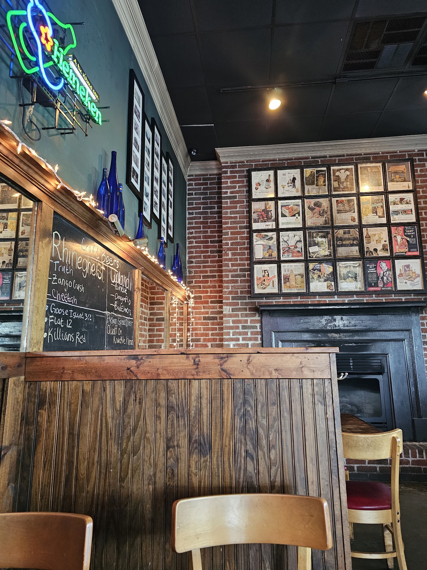 First off I'm not from the area, just passing through Lawrenceburg, and thought the local place would be a good try. Good menu for a seemingly "fast" meal, but watch the PRICES as they do not match what you'll be charged! The FOOD 1hr 4 min after we received beverages: My co-worker and I ordered the Lawrenceburg (big burger)- w/ horseradish (barely a trace), lettuce, tomato, onion, and bacon (missing), and the Double Lawrenceburg Jr- add fried egg (burned and greasy HOW?!?!). All patties were burned to some extent and very overcooked, the portions that were not burned had good flavor and were DRY. The one patty on the Junior was the tire shops hockey puck cousin. No Joke! The Wedge salad comes with bleu cheese, of which I am not a fan, so I requested from our waitress Ranch instead. She did not correct me saying that there's no substitute. I would have been okay with the answer, but removed the request if that was the case. Salad arrived on a 10 inch dinner plate equivalent and it was HUGE! 1/3 HEAD of lettuce swimming.... drowning in Bleu cheese with some nice bacon and good tasting tomatoes. I didn't touch it other than a bite of bacon and tomato. Onion rings were fine my co-worker said, but the sweet potato waffles were half soaked in grease. The ATMOSPHERE - Smokey from the grill, neat eclectic small space, very sticky floor and back door from grease running to the cooler next door for the kitchen...gross. The place has potential but the owners and employees clearly need a family sit down and take action for the quality, portions, cleanliness, and speed at which your order arrives. I will NOT RETURN and can NOT RECOMMEND this establishment. Thanks for your patience and please choose wisely. ~$52 for the above with 2 beers which are...