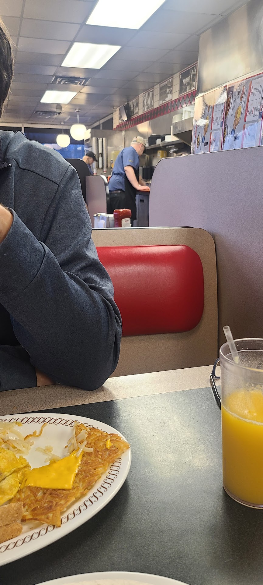Read moreTo start off as soon as we walked in every booth had dirty dishes on it we waited for about 25 mins before we was even acknowledged after the server seen we was there she begin to go to a booth to clean it she never cleaned it got side tracked like she was confused I went to the table and cleaned it so we would have a place to sit after we sat down we still wasn’t acknowledged for awhile I proceeded to get our menus so when the server came we could get out drink and order at the same time after we ordered 25 minutes later our server seemed very confused onto what was going on she was talking to herself asking what day it was and etc it took us 10 minutes to receive our drinks. Our cook was outstanding he was having to work with what he had and he was trying his best our food was great once our food got done the cook proceeded to bring our food to the table because our server was standing at the counter rocking back and forth after further observation our waffles begin to sit out and we received them cold at this point we was over it and ready to go the hotel after being on the ski slopes all day while we was eating I observed the store and the server was forgetting who’s food went where and who ordered what drink it was bad. I highly advise you to watch this Waffle House as we had a awful experience Upon entering the establishment, we noticed that every booth had dirty dishes. We waited approximately 25 minutes before being acknowledged by the server. After she observed our presence, she began to clean a booth but became distracted and confused. I took matters into my own hands and cleaned the table to provide a place for us to sit. Despite our efforts, we were still not acknowledged for a while. I proceeded to obtain our menus so that we could order our drinks and meals simultaneously. After placing our order, 25 minutes later, our server appeared to be perplexed about the situation. She was engaged in self-talk, inquiring about the day and other details. It took us an additional 10 minutes to receive our drinks. Our cook performed admirably, despite the limited ingredients available. His efforts were commendable, and the food was delicious once it was prepared. However, after our meal was served, the cook brought our food to the table because our server was standing at the counter, rocking back and forth. Further observation revealed that our waffles had sat out and were served cold. At this point, we were beyond patience and ready to leave the establishment. While we were dining, I noticed the store and observed that the server was consistently forgetting who had ordered what food or drink. This lack of attention to detail was unacceptable. I strongly advise you to avoid dining at this Waffle House, as we experienced a profoundly...