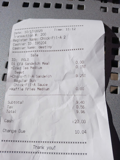 Read moreThis location has made me rethink my expectations for Chickfila. The staff is inattentive and maintain a very lazy attitude. When asked for something politely, the staff will complete the request, although this is accompanied by rolling their eyes and some sort of snark side comment. Don't get me wrong though, the problem runs much deeper than the workers. This location has a culture problem, headed by the manager. She leads the pack on this one, and I am disappointed in Chickfila for allowing such practice. I have never really had a bad experience at any other Chickfila, and I eat there quite often. However, the consistency of the poor quality of service here has driven me away. I am a full time student here, and will no longer be going to...