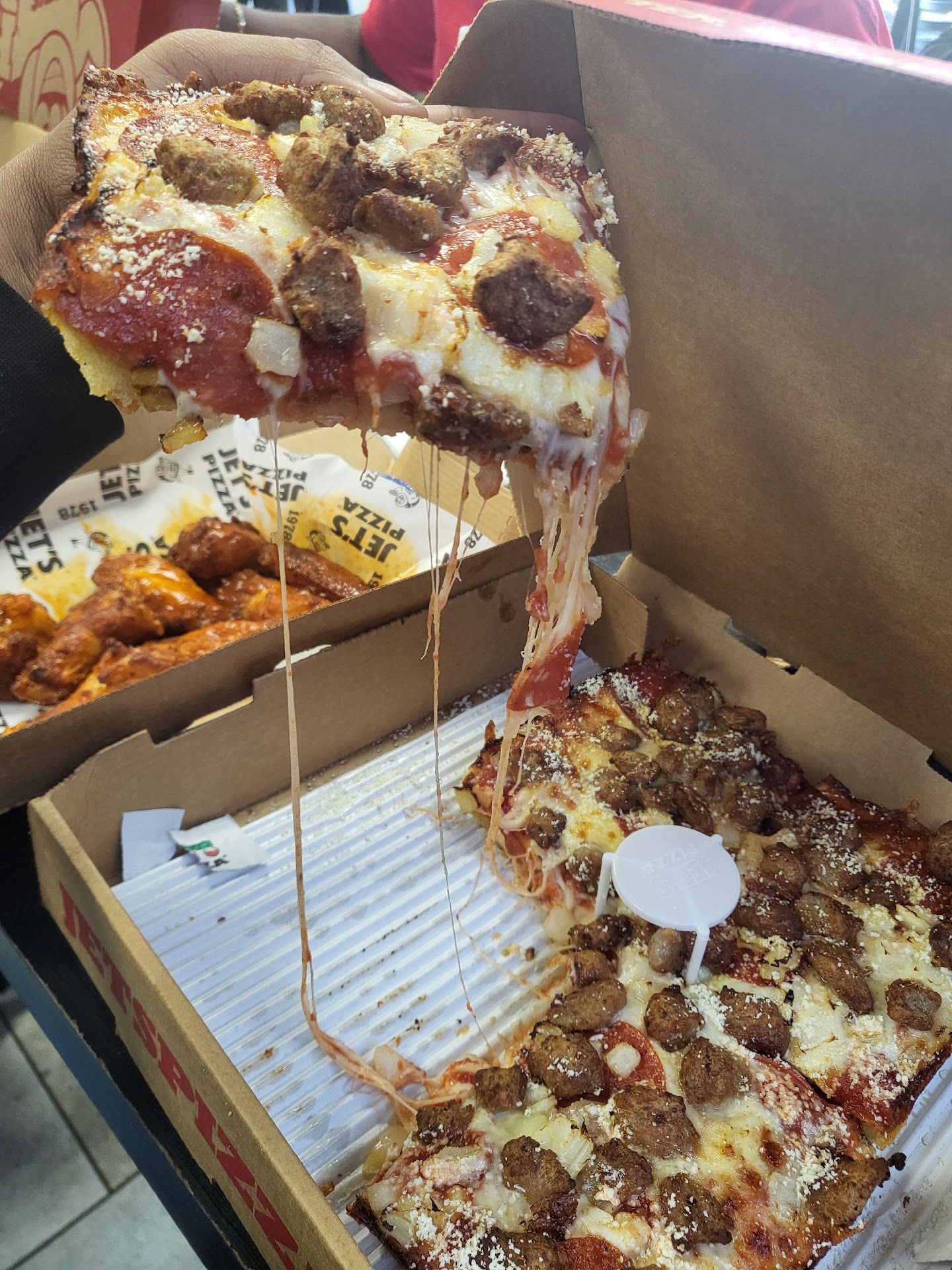 Ā Ā Ā Read moreWe order from Jetās often. We normally get the large thin crust Jet 10. Tonight we ordered delivery instead of picking it up like we normally do. For a large thin crust Jet 10 (and we paid extra to add on extra cheese and mild banana peppers) and a medium Greek salad with a tip it came out to $43. When we opened the pizza, it was round (which is oddā¦itās always rectangular), overcooked, barely any cheese (definitely not the extra cheese we paid for), and the banana peppers we put on top like they forgot them and not baked into the cheese. When I called to inquire what happened, the worker who answered the phone said that is how it was supposed to be and if I wanted to drive up to the location (at 9pm at night) he could remake it or take $5 off next time. To say we were underwhelmed and disappointed is an understatement. As loyal customers who usually love Jetās pizza, it makes us not want to order from the Sugarloaf location any more. Not...
