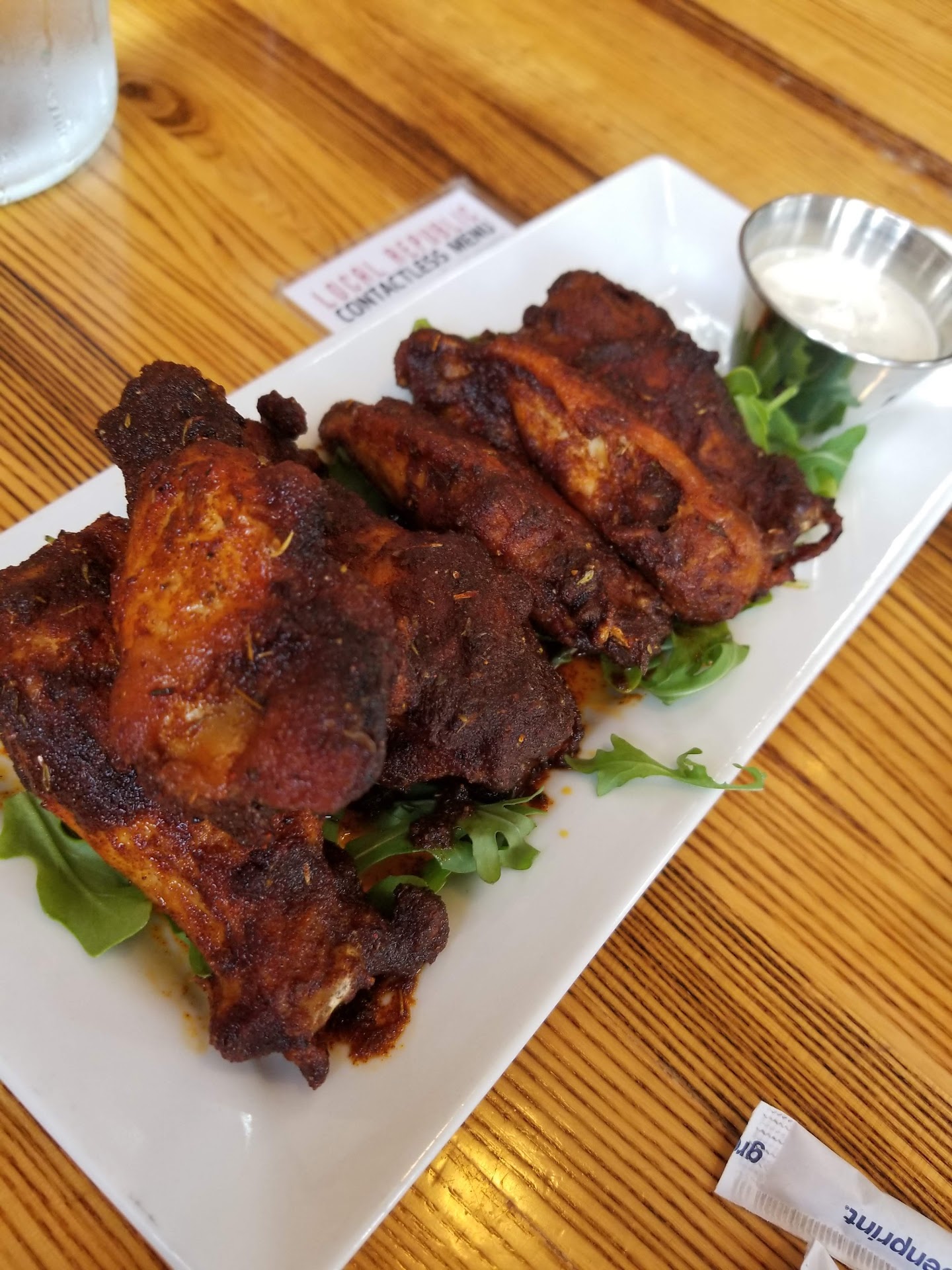Had a good experience at Local Republic... great ambiance and our waitress was really awesome. She was honest about her knowledge of the menu, and her personal favorites. So we started with smoked chicken wing as an appetizer. Apparently you get only two options on the flavor, Hot Fresno or the weekly special. We opted for the weekly special flavor and so glad we did! Smoked Cajon Butter wings! Immediately I could taste the smokey flavoring, they had a nice soft crispy (as opposed to cur your gums crispy) texture on the outside. The chicken itself was moist and flavorful. However, they were kind of bland and needed a little salt. But, that was no big deal because their dill sauce (likened to a house-made ranch) was flavorful enough to hide the fact the wings were a bit bland. So for our main course, I had the Celine Dijon burger. Apparently it is one of their most popular menu items and rightfully so! Can you just imagine fried white cheddar cheese and a sweet jam sauce made of bacon??... it is a harmonious blend of sweet and salty that is ever so pleasing to the taste buds. Oh and that's not all, it was served on a perfectly toasted brioche bun. Absolutely amazing! The burgers are served a la carte so I ordered the garlic and smoked gouda mashed potatoes. That was good...once I added salt and pepper to it... So hubby ordered the chef special, item was not on the menu, Saffron Chicken tagatelli. Marinated grilled chicken and some other stuff, lol. It was likened unto an alfredo type sauce but not really. Anyway it was gooood. Seasoned just right! He also ordered a side of the bacon mac'n cheese because... why the heck not! That, was surprisingly really really good. The only thing is that the sauce was a little liquidy. We would have preferred the sauce to be a bit more creamy/thicker, but that did not stop me from nearly eating it all before hubby could get a bite. It really was good! And finally there was dessert. Hubby had the peanut butter cake... an oreo cookie crust, peanut butter cheese cake made with real cream cheese, drizzled with chocolate and caramel. Can we say rich and sweet! That was soooooo good. I got one of my favorites, creme brulee, made with vanilla bean. Hands down, this was probably the best creme brulee I've ever had! Hubby even agreed that it was BUSSIN' lol, and that is a lot coming from him because he doesn't care for the simple dessert like I do. We were surprised to hear that the pastry chef is only 20 years old! With her talent I would have guessed that she was much older. Because both desserts were so good! Not much negative to say except, some items needed a little salt. Flavoring very good but a little salt would have taken it up notches. Also, we really went there to try the pork cheek fries, but they were out...for the day? So you're telling me at 2 pm on a Saturday you're out of one of your most popular menu items!?! Very sad indeed. But, definitely worth another trip as there are plenty of other items on the menu to try as well. So if you're in the downtown Lawrenceville, area, I'd highly recommend Local Republic......