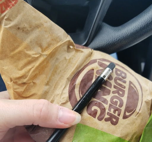 Today I ordered a #3, the Bacon Whopper. The burger was good, but I found a black pen/Crayon thingy in my burger wrapper. It wasn't on the inside where my burger was, but when I went to unwrap the burger, the pen fell out of my wrapper. I laughed so hard. Honestly, if it was touching my burger then it would've been an issue, but it was in the paper, so I still ate my burger.