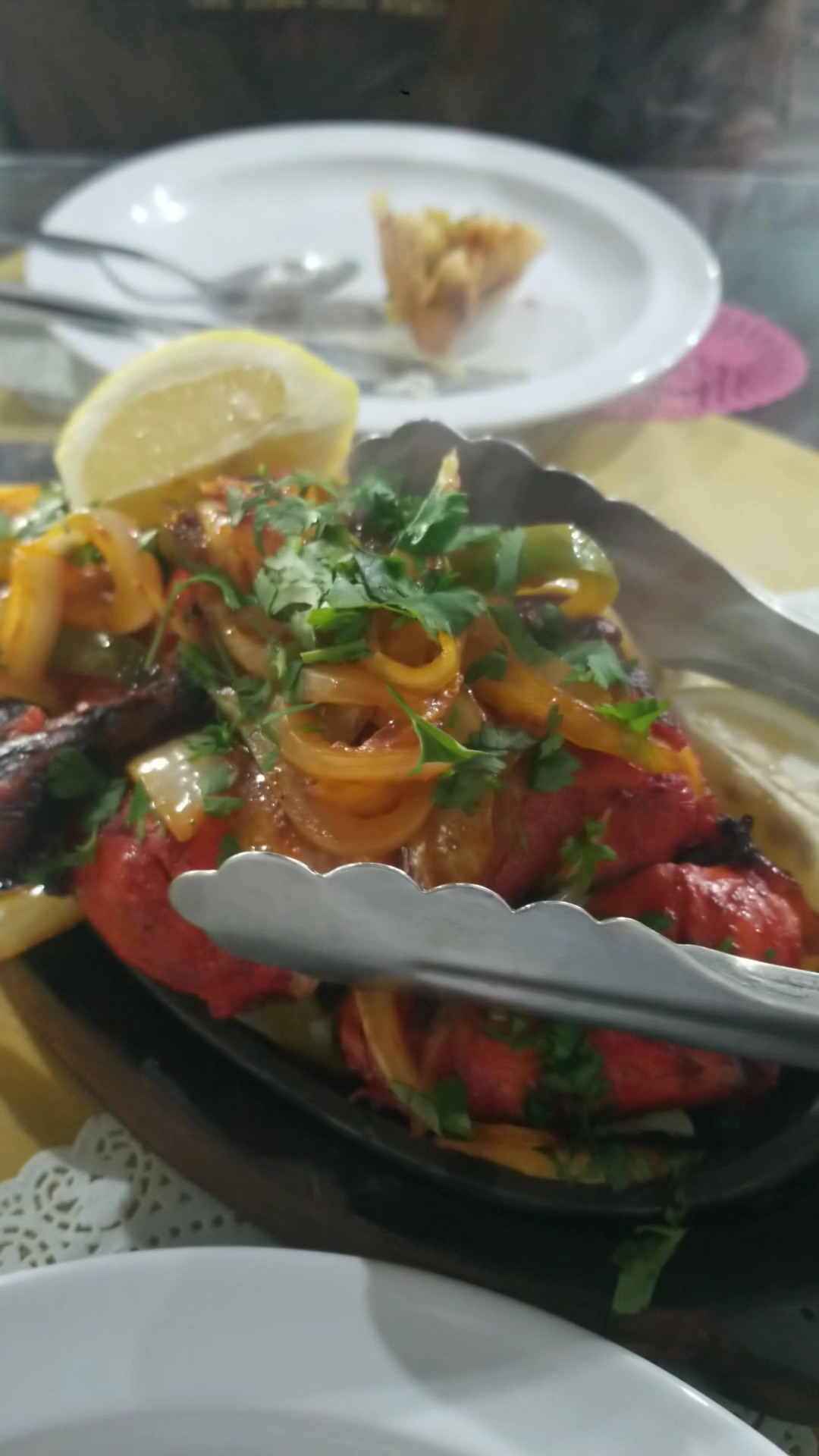 A friend and I decided to come here for the 1st time this week and we were not disappointed. Starting with the atmosphere, I really enjoyed that they had Indian music videos playing. Outside of watching a one off Bollywood movie I have personally not heard a lot of this genre of music so it was nice to hear different kinds of music from the Indian culture. (Updated)The 3 stars just comes from some of the decor that seemed out of place, like the paper doilies under the glass on the table that looks like it was left from valentines day. Nothing major but just something I took note of, but the main reason is the fact that it can be a little warm in there. With how hot it's been outside they need to make sure that AC is pumping in there. About the serive, the women that waited on us was really nice but she was MIA sometimes and based on the conversation I overheard from 2 elderly women that were sitting close by she was neglectful at times. I didnt have any major issues with the service I just wish she was a bit more attentive with our drink refills or just updating us on our food since there weren't a lot of people in there dining and we did have quite a wait for our food. She later explain that they made the tandoori chicken to order so it takes a little longer. I also noticed that even though the dining area was empty the seemed to have a lot of doordash,ubereats orders come through. So, about our meals. Everything we had was SOOOO DELICIOUS and well worth the wait! The samosas were packed with filling and flavor. It was paired with a green type of salsa and a sweet kind of sauce. Not sure what the actual name of it was but they were both tasty. As you can see from the video I added my chicken tandoori was brought out sizzling hot and my grilled onions were ACTUALLY grilled. I hate when restaurants throw raw onions on at the last minute and and they try to pass off slightly warmed up onions as grilled onions. It's a BIG pet peeve of mine, mostly because I dont really like raw onions. So, I was happy to see that the onions on my plate were actually grilled, cooked, and extremely flavorful. The basmati rice that came with my meal was cooked to perfection and the yogurt curry sauce was 👌. All of this plus the garlic naan was just heaven. My friend had the butter chicken and that was just as good. After our meal we decided to try some dessert and got the balls. I will search the actual name for that dessert and add it to the image. It was my 1st time trying that and it was better than expected. It kinda reminded me of bread pudding. Like it would be bread pudding's distant cousin or something. I'm not sure if that's what it's supposed to taste like but that's what it reminded me of. Either way it was pretty good. Ultimately, we really enjoyed this place and had a great experience here. I know a lot of people are ordering food for pick up but I highly recommend going into this establishment and enjoying...