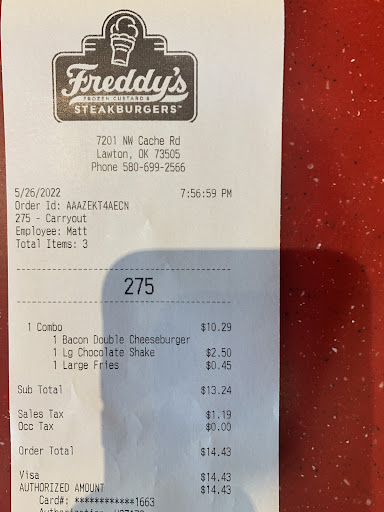 Work on your customer service skills. Maybe consider whether or not your pricing is reasonable especially considering those customer service skills. Iâd been wanting to try Freddyâs for a while, to say this was a let down would be an understatement. The food was decent, but I wonât be back until I make a small fortune and am assured that customer service is better. I get it when people are human, but Iâve never been snapped at like that when I questioned a total. There are many places out there that offer a similar style of dining for a much more reasonable price.