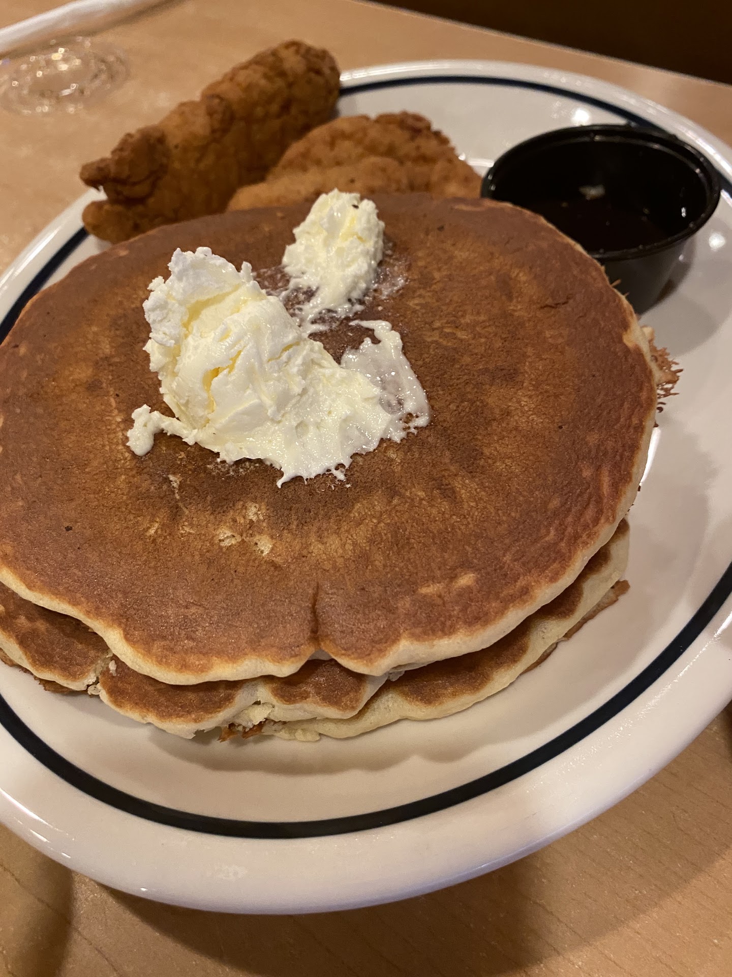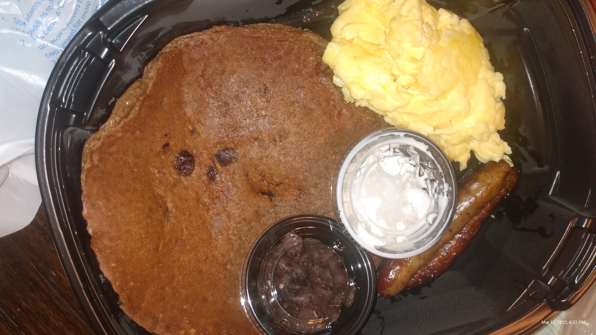 Read moreMy husband and I go to this location pretty regularly since it is close to where he works. We arrived at about 10:20. There was one group ahead of us and three that came in after us. It took about 15 minutes before we were seated and they had to clean tables for people to be sat. We made a simple order: mozzarella sticks as an appetizer, bacon cheeseburger with no lettuce, tomato, or onion, and a Belgian waffle combo with over medium eggs and bacon. Around 30 minutes later, our mozzarella sticks came out and were hot. Coffee refills were infrequent. While we waited, the group from in front of us finished their meal and left as did one of the (relatively large) groups that came in after us. This was all before we received our food. Over an hour after we ordered, our food arrived. What made my husband super angry was that a group that arrived and ordered after we did got their orders before we got ours. When our orders finally did arrive, my husband's food was cold and mine was only warm. We ate it because we did not want it wasted or to wait for it to be corrected. It was already almost midnight. As we started eating, yet another group that arrived after us finished and left. A long wait can be the result of a backed up kitchen. Cold food is entirely on the server. Our server came back one more time and fished through tickets until she found ours and gave it to us. She never came back to the table to check on us or to see if we needed any more to drink. We only saw her again when it was time to pay the check. I reminded my husband to show his veteran ID so we could get "some compensation for this BS service". Our check started out at over $36 and the discount dropped it to $32. Husband tipped 10% of the discounted total when we usually tip over 20% of the original total. I completed the survey indicated on the check saying we were less than satisfied and requesting that we be contacted regarding our poor experience. We will see if that actually happens. It is extremely unlikely that we will go back anytime in the near future if at all. If we need to eat somewhere late night on a weekend, we'll go to...