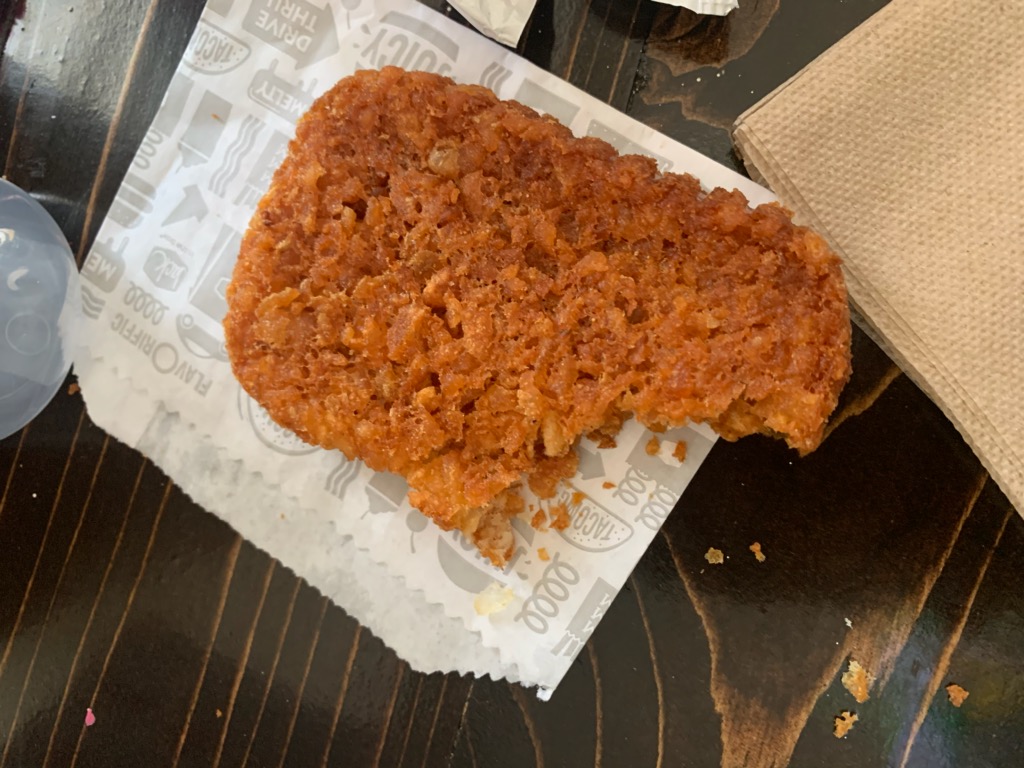 Read moreThis was my first time being at a Jack in Box. I had no idea what the menu had, I went through the drive-thru ( I'm sorry) & I ordered a plain hamburger & fries, they asked me if I wanted curly or straight, I had never had them so I asked what was popular & they said curly, & then I saw they had miniature tacos on their menu! And a boba tea. It was inexpensive, the hamburger was pretty good for fast food, I think next time I will try the straight French fries, the boba tea was terrible, I don't know if they need to cook the boba pearls longer so it's not crunchy but those mini tacos.... Those dang mini tacos.... I didn't know what I was missing. I know that anytime I seen a Jack in The box I will throw my whip in reverse to get some of those mini tacos. The server was patient I really had no idea what was on the menu, I said a lot of ums & hooing & ha-ing, & the server just took their time, said it was okay, I didn't even explain it was my first time they were just that polite. Now for the atmosphere: if you are in the drive-thru; lock. your. doors. This area seems very unsafe. They whole main drag looked so dilapidated & dingy. I will 100% tango w/some mini tacos again, Jack in the Box, you got a new fan! Just not...
