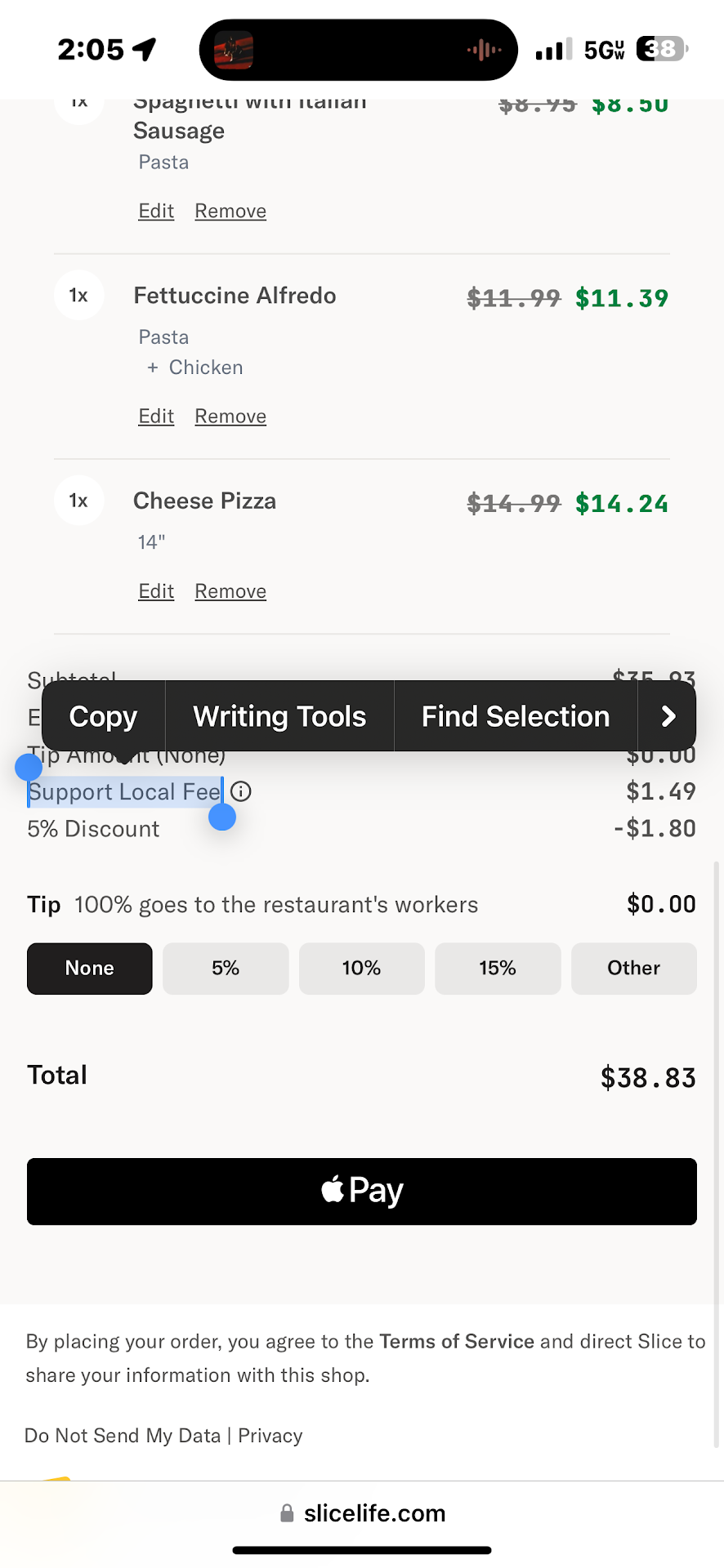 The food we received was really good but upon walking up to pickup our order, the food they had out and serving people looked like it had been out all day. It looked old and disgusting, not fresh at all. There were also flies on the food they were serving. Luckily, the food we received was separate from that and it was very delicious. Did not look old and disgusting. Not only was I disturbed by this, I ordered online and was charged a SUPPORT LOCAL FEE. Wtf? Shouldn’t I be getting a discount for supporting local, NOT being charged more? Ridiculous. This ridiculous fee + the nasty atmosphere...