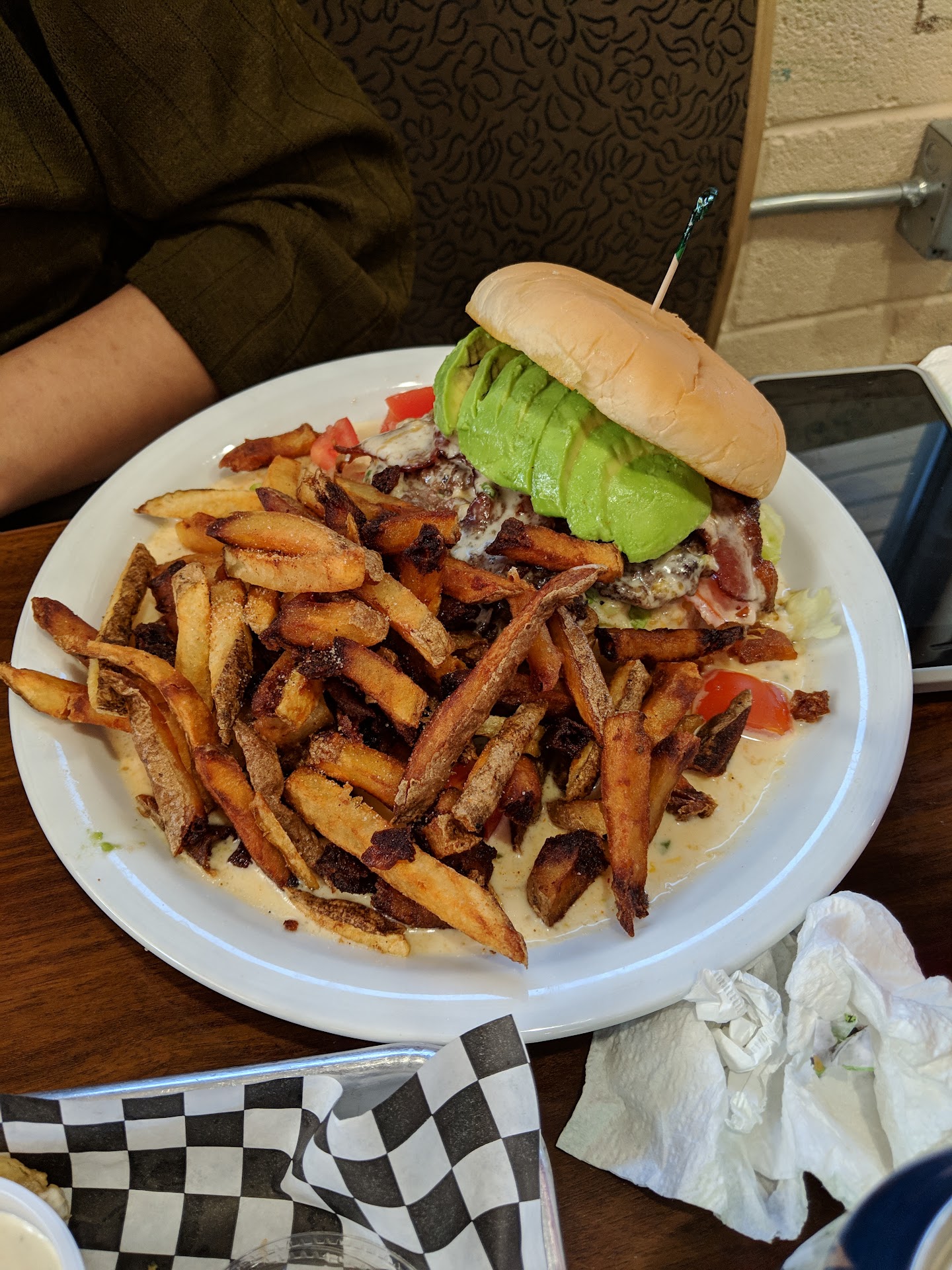 Pros: -The food is fantastic. Let's get that out of the way. I'm not sure what they do too their fries, but they taste incredible. The burgers are amazing and the presentation is perfect. You're greeted with a hearty plate of food that took less than 10 minutes too come out.