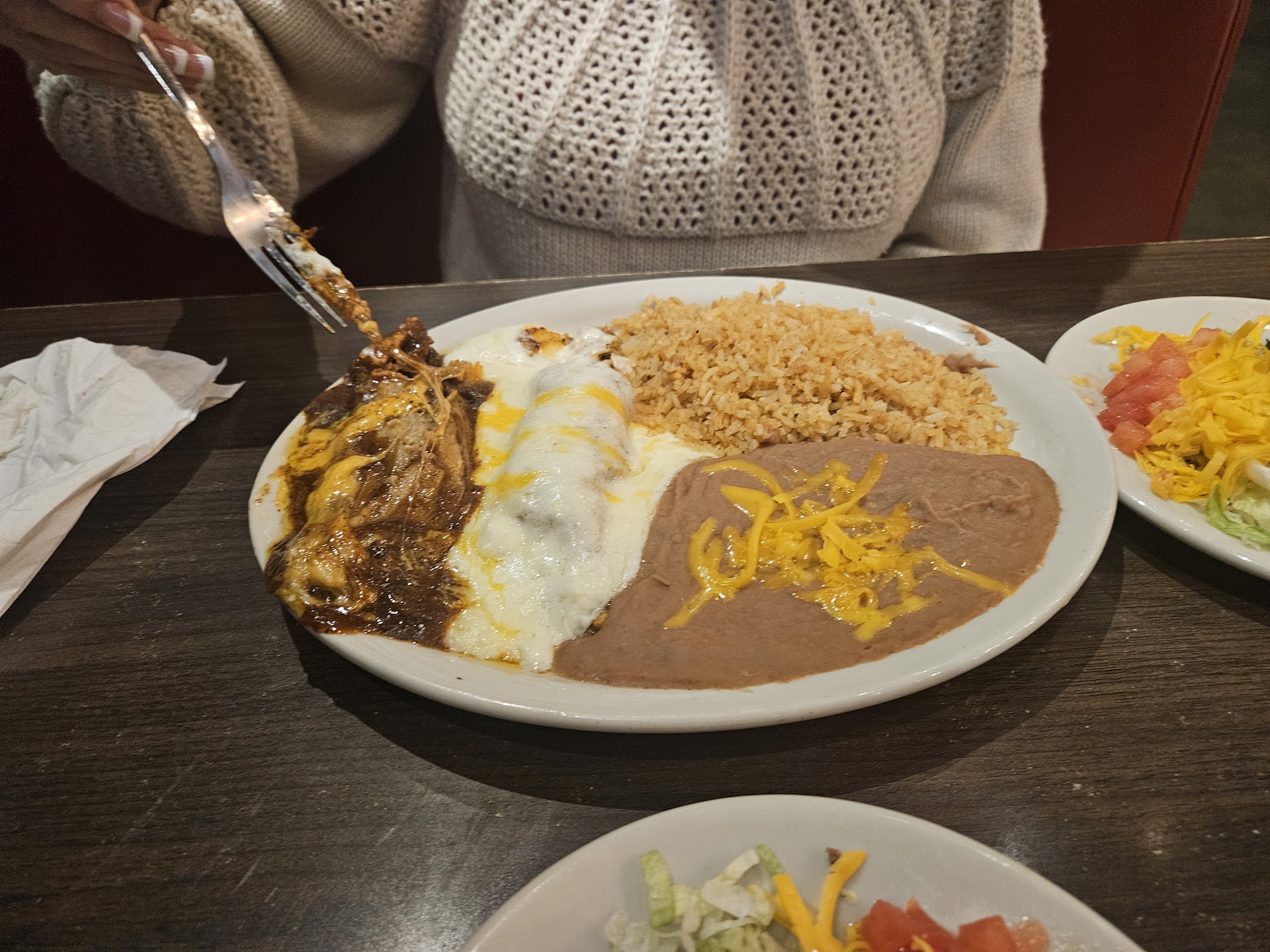 Read moreThis place was terrible! I wish I could give it no stars. Everything seems to be premade and makes it impossible to change anything as simple as fajita chicken instead of shredded chicken in a chimichanga. Then it's just thrown in a deep fryer when ordered and then onto a plate with nothing else, no sauce or anything. Everything was grossly bland and smothered in way too much cheese to the point that my enchilada turned to mush from the cheese grease, so much that I didn't even know what was on my plate. The chili rellano didn't look like any I've ever seen. It looked like a mozzarella stick from a box and was mushy cause it only had greasy cheese in it and was thrown on top of my beans. You can tell the beans come from a can and the tortillas straight from a mission package. The prices were way too high for such terrible food and my husband was seriously disappointed with the beer selection, they were out of everything he wanted and when he finally found one they had, his 8 dollar beer was just given to him in the can. They couldn't even put it in a glass... I know first world problems but we've been to plenty of Mexican resuraunts and they have never ever just handed a can of beer to its customer. All in all this place seems to buy everything from Walmart and make it the day before then charge an absurd amount for it. I never leave reviews on places cause it's not all that serious but we both wanted to try this place for awhile an we're so disappointed. I seriously don't know how this place is always busy with such high reviews and my standards are low when it comes to Mexican food, I mean I'll eat tacos off a truck and from the stripes on Gore for goodness sake. I'll stick to Teds and Los Tres Amigos when in The mood...