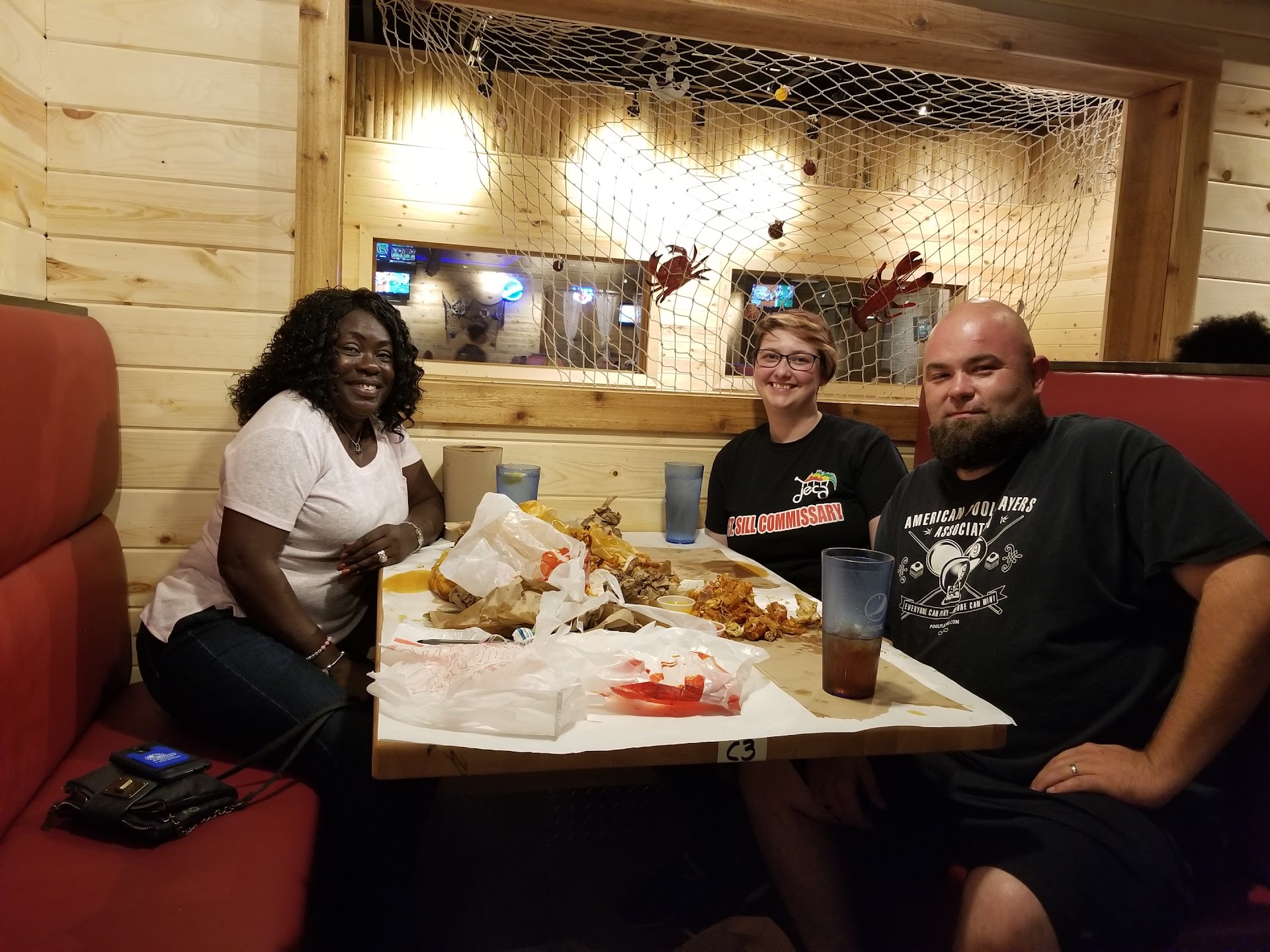 Authentic low country boils are boiled outside in a huge pot and scooped out with a large strainer and served in the center of the table on top of newspaper that you spread out prior.... (and everyone will just grab a portion and pull it to them and chow down. The best conversations happen over a low country boil) hence the piece of paper on their table here at this restaurant. I imagine it's their attempt at being as close to authentic as they can. (I think they may have had a wonderful experience in the Seaport and are trying to repeat the experience. And I'm so glad about it) For the fact that we're not coastal I can except the fact that the seafood isn't super fresh but it is delicious none the less. There was another great seafood place in Lawton but they closed and put something else in its place, I hope this place stays open, otherwise I'd have to make the trip to OKC to eat at Pier 88.