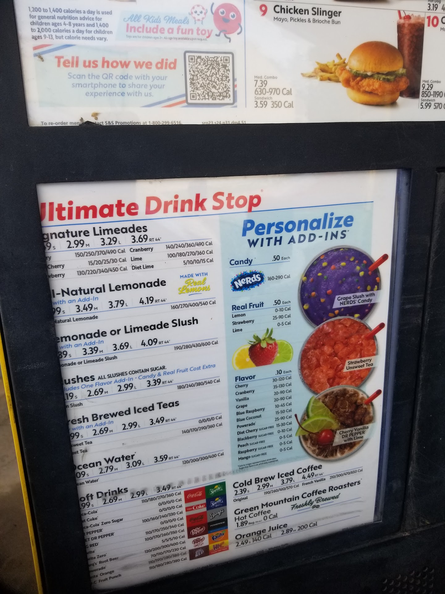 Read moreWell I thought it was great service(even tipped my carhop). That was until I opened by bag and to my surprise my large mozzarella sticks were missing. Luckily I was still parked in stall 17 so I was saved from having to turn back around. I hit the button, informed the worker of my missing item, they rush it out within minutes to now find that I received 7 instead 8 sticks. Smh. I'm not going to be that petty and complain further, I see they are trying..but I would like to say slow down, breathe and just take the extra seconds it takes to make sure the orders are going out correctly. Trust me, customers would rather wait the extra time to get a correct order rather then waiting less just to...