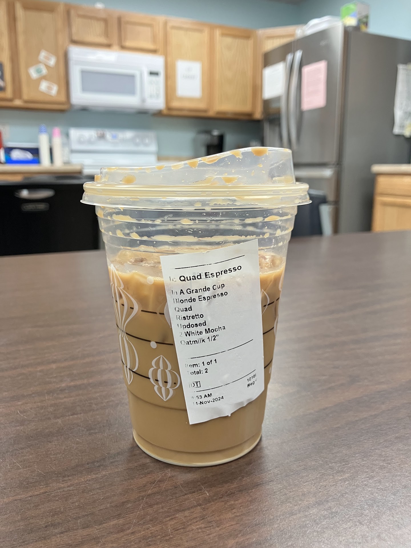 Point 3, and what brings me to actually post this. I woke up early to make sure I could get my coffee. The starbucks on Ft Sill doesn't open til 0700 so that one wasn't an option unfortunately, and I had no other choice but to come to this one. I roll up at 0500, get in the drive they and sit there for 3 minutes. Nada. Not a peep. I tell myself they've forgotten to turn their headsets on. So I pull up to the window. I could be wrong but it looks like there's someone hiding around the corner in the store! No one acknowledges my presence. So I park and go up to the door. Hours sign AND website say they open at 0500 but at 0510 the door is still locked and the lights are off. Finally someone comes to the door to say that NO ONE WAS SCHEDULED TO WORK THAT MORNING! Um. Excuse me. There are two baristas in there from what I can tell, you can't just run the drive thru?!?! Nooooooope. It was basically GTFO.