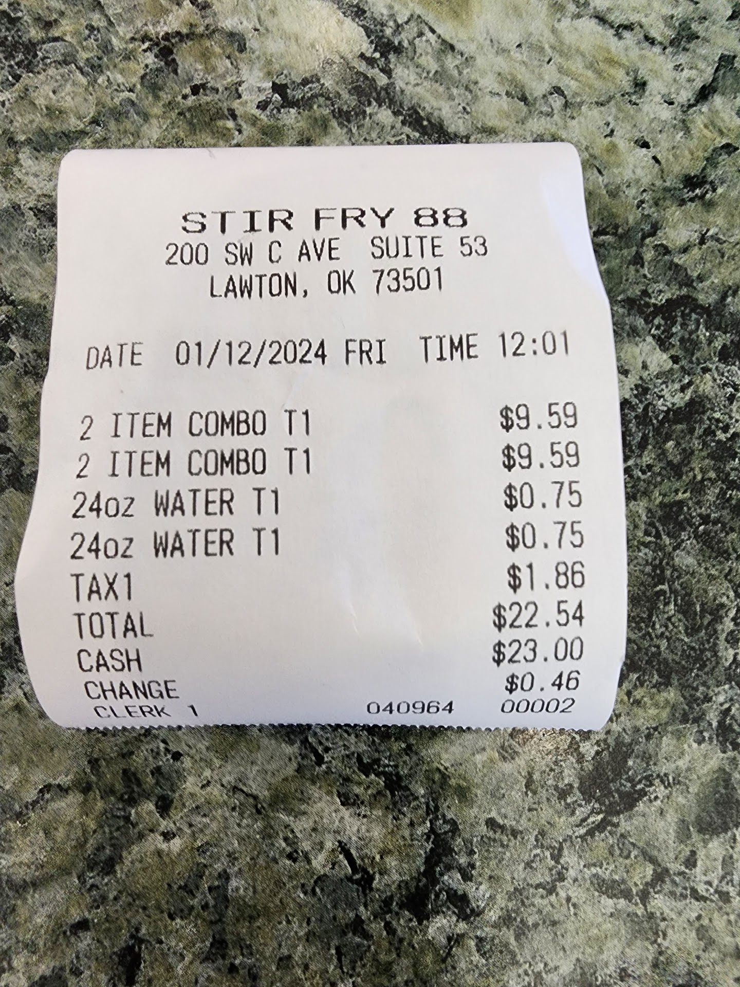 Read moreWas there today, have been going there off a6on for 5yrs , today it sucked , I thought with it being around noon it would be good because it would be fresh , I was so wrong, the chicken in the chicken mustard was so old it looked like it had been freezer burnt and then fried , the noodles and fried rice had no flavor and had used left over rice that was dried out , I generally like your food but today ranked a 1 for effort, I am really considering not coming back. Raised the price and quality...