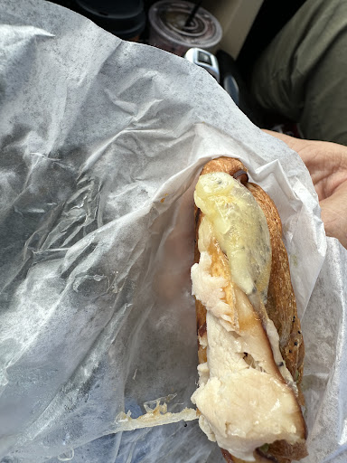 On 6/4/24 shortly after 8 a.m. (they didn't give me a receipt, so I don't know the exact time, just that I left where I drove from half a mile away at 8:03 am). I ordered a coffee, a smoothie, a croissant breakfast sandwich, and a bagel sandwich from the lobby counter. Coffee and smoothie came out after about 7-8 minutes along with a sandwich that was NOT what we ordered. 10 or so minutes later, I asked if the correct sandwiches were done. The employee looked stunned, grabbed two sandwiches off the drive-thru counter and handed them to me. I checked to make sure they were the right sandwiches (since they had already given me the wrong one). They were the right sandwiches...but both were smashed. The croissant was so smashed that the bottom layer can't even be seen from the side (see picture). The bagel clearly had finger indents in it (see picture).