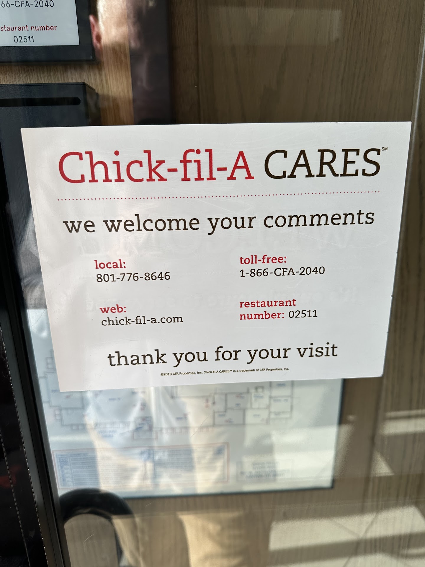 Read moreWell all it takes is one bad experience to make a customer go from a five star to a 1 star for service. I do not live close by and traffic around there is always horrible around dinner. I was on my way home and decided to get something to eat and realized after I got home that I did not get one of my items. I tried calling and it kept going to voicemail. Finally got a hold of somebody after the 5th attempt and I was not able to go by the same day because I do not live close by. She gave me an option to get a coupon in the mail as the only option because they were not willing to give me my salad the next day when I would be in the area for my job. So not only do I have to waste gas to go all the way back out there but I also have to bring in my receipt (which I do have and that's no big deal) but it's so inconvenient with the heat and the traffic and the fact that they forgot it . What am I going to Wendy's or McDonald's or something? come on! You guys are supposed to be on top of your game of handing the right food to people. They used to be really good and I've never had an issue before but the last couple times I've been there they've been off their usual service. I will say she wasn't rude but she was just extremely non-accommodating **Management contacted me and refunded me my item on the Chick-fil-A app. It's just as easy to get a customer back up to a 5 star...