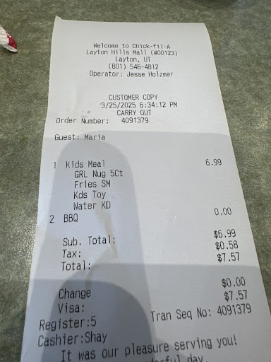 I was really happy when the Chick-fil-A Layton location opened, and for a while it seemed pretty good. But the drive-thru is such a mess, and the way people can come in and out of the drive-thru and parking lot is so confusing that the drive-thru line ends up taking an insanely long time at this location, and people often drive in through an exit lane and then cut the line in front of other people who have been waiting longer. I tried to go here twice this week, and both times I eventually had to get out of line because either the line was so confusing with people coming in from various directions or their line was just so long and not moving, that I never could actually get up far enough to place an order.