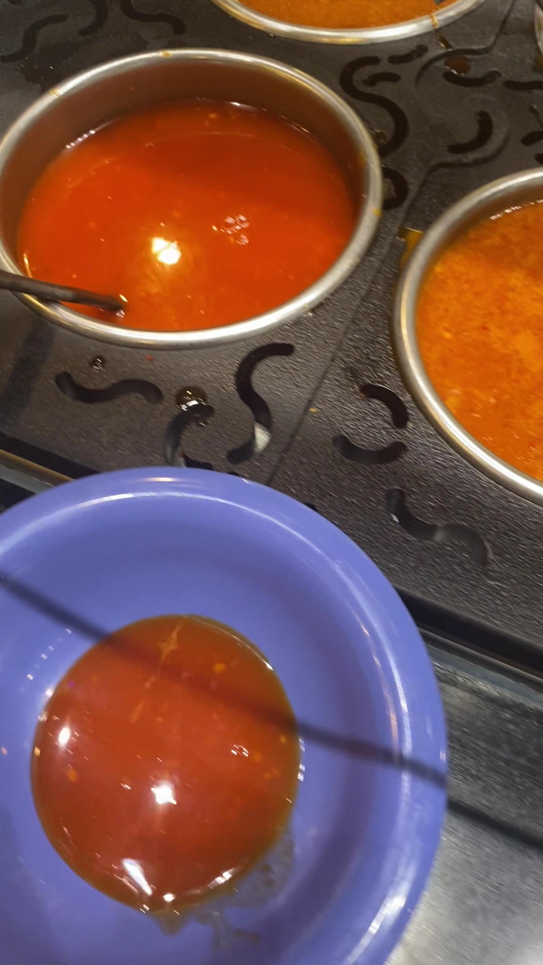 This is sort of a stir fry hibachi buffet. You choose cold noodles, rice, meats, veggies, sauces, in any amount and combo you like, then the cooks fry it up on a big round flat grill. You can always come back for another round to try different combos, but here are some tips I wish I had known before diving in: