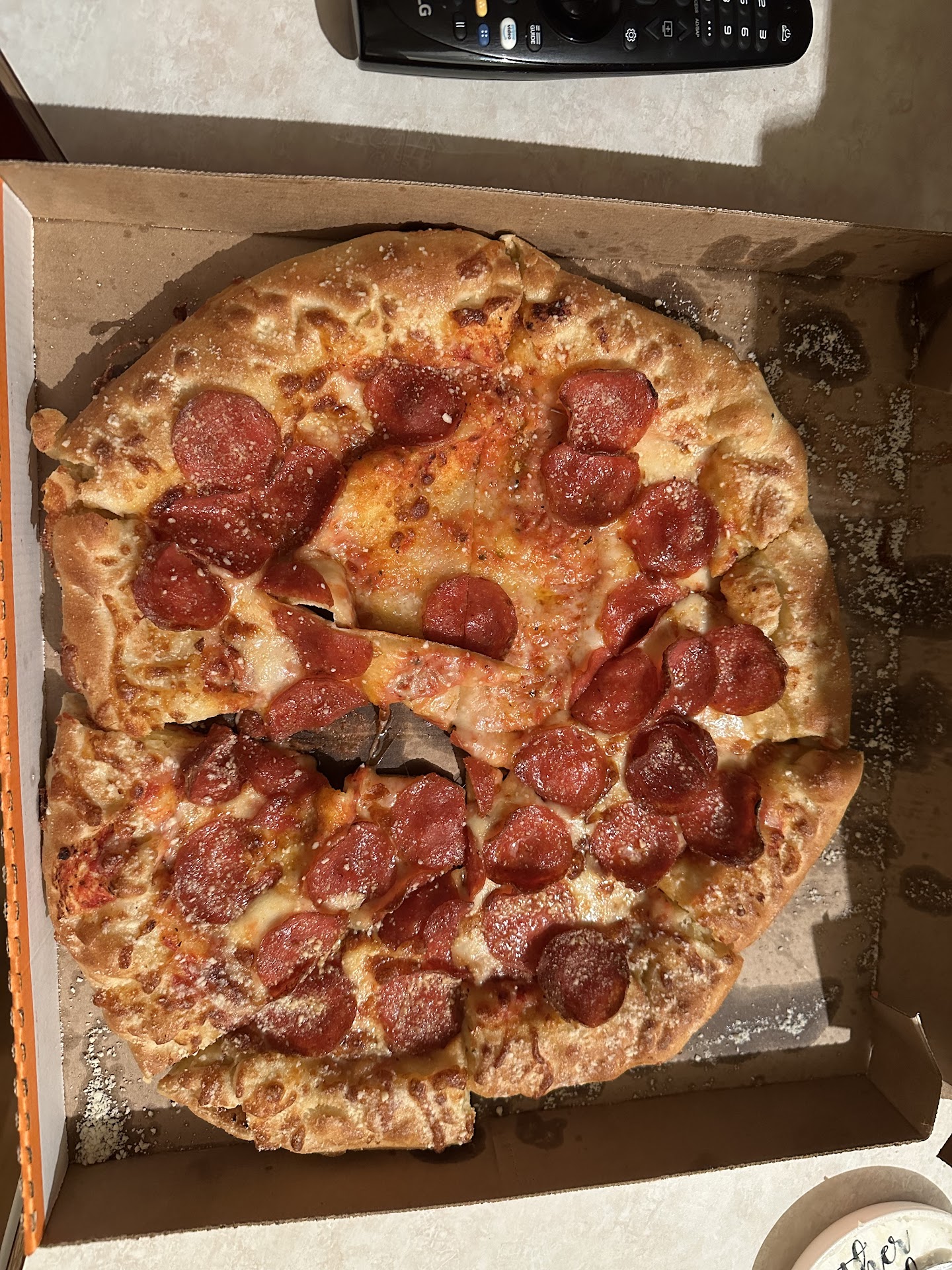 Read moreI have never had an issue with Little Caesars until tonight. I opened my pizza box and was appalled. First off, it was cold when I picked it up. Next, literally one third of the pizza didn’t have cheese on it. Third, the crust was soggier than a swamp. Fourth, the pizza was just randomly thrown on, leaving the center of the pizza with no toppings. Lastly, the pizza looked like it was cut my a kindergartener, leading to cheese being melted to the box between the slices, so I had to scrape cheese off to have what scanty amount of toppings I could salvage.