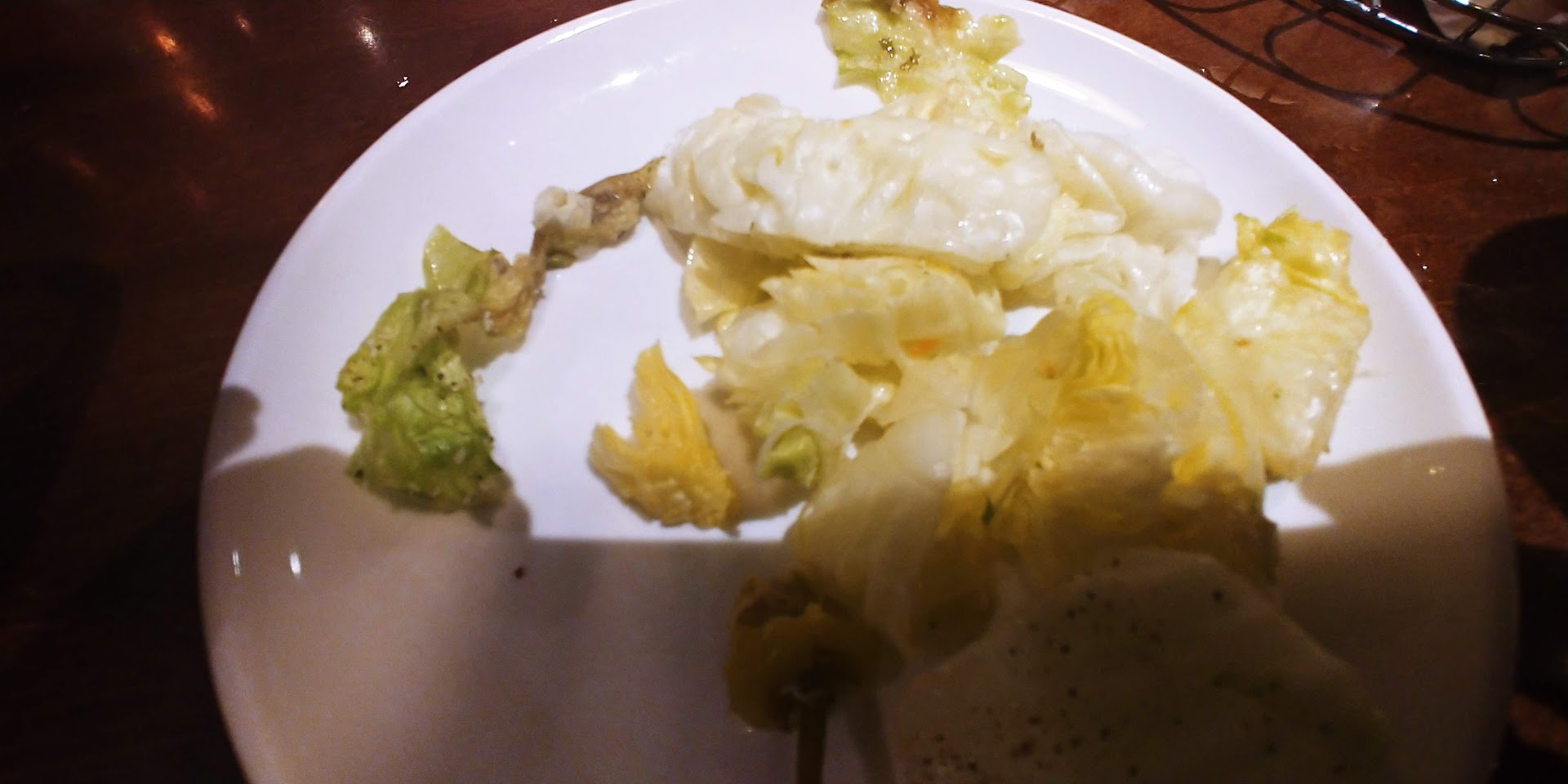 The first salad had six or seven chunks of bitter pale, center of head lettuce. The second salad had rotten lettuce portions. (See photo)