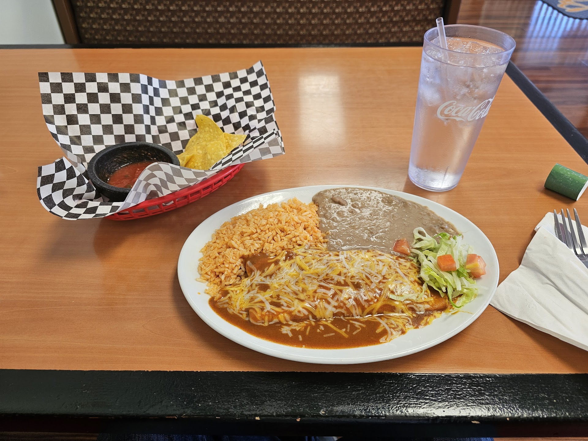 Read moreMe and my mom went here for lunch, we wanted to try something new. I ordered the 2 beef enchilada and my mom ordered the smothered chicken chimichanga. This has been one of the cleanest restaurants I have been to, the music is warm is and inviting and at the perfect volume, and the food was amazing, it was fresh, hot authentic and flavourful. (Sadly we have no pictures because we ate it so fast.). I wish they would have given us more chips because the salsa was so good and the torilla chips were warm. Prices were very reasonable for the portions sizes and the service was so sweet. Definitely...