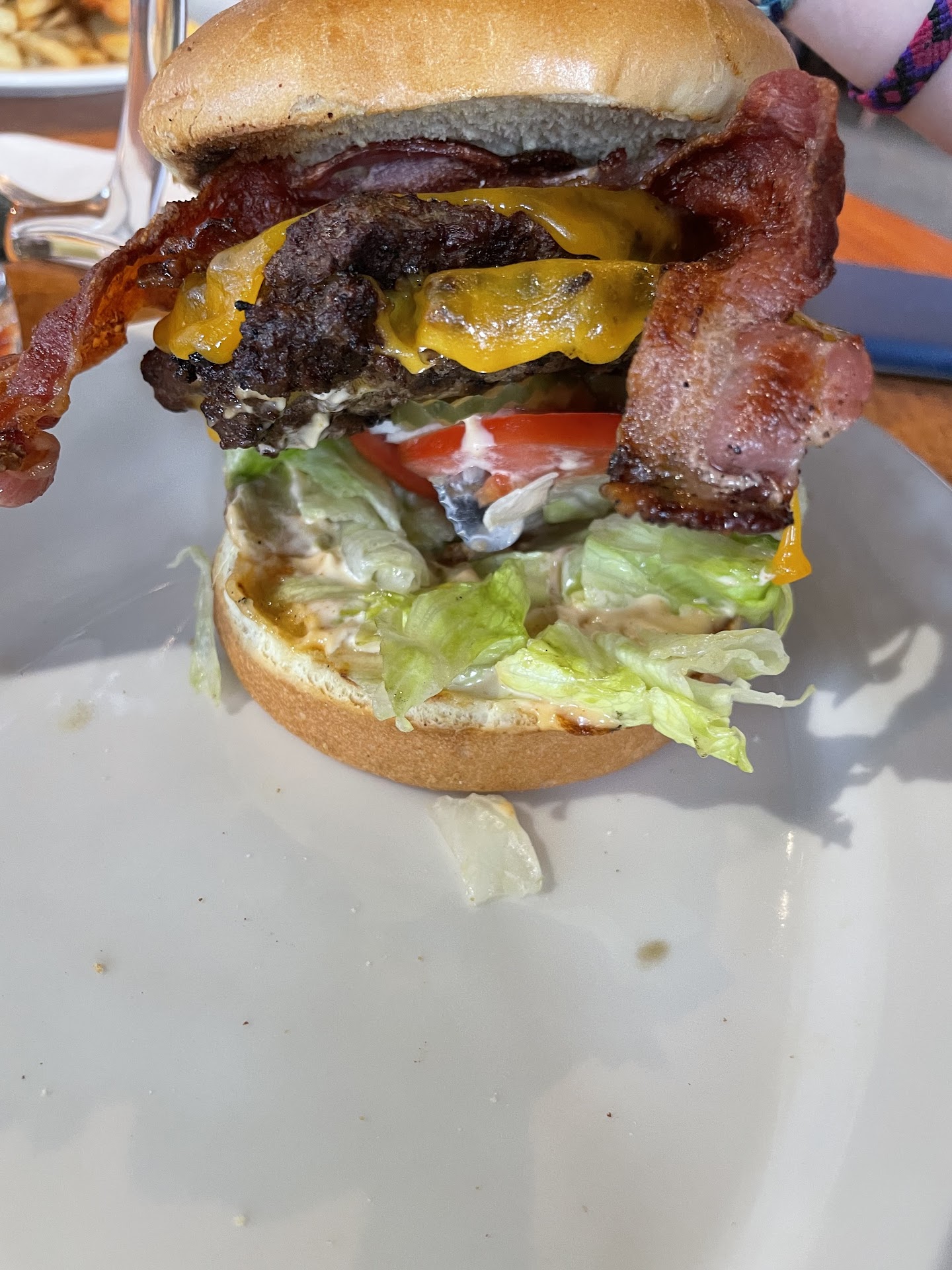 I got the steak and all you could eat shrimp. The shrimp was delicious and the steak was okay. I had the thickest piece (lucky me!), but it definitely was not medium rare. I think they cook all the steaks the same regardless of what you request. Our daughter got the mega bacon cheeseburger and it looked delicious! I want to get THAT next time. She was super happy with it and it was extremely filling. Our son ordered the salad bar and was pretty happy with the options. I was eyeballing the Navajo tacos at the salad bar.