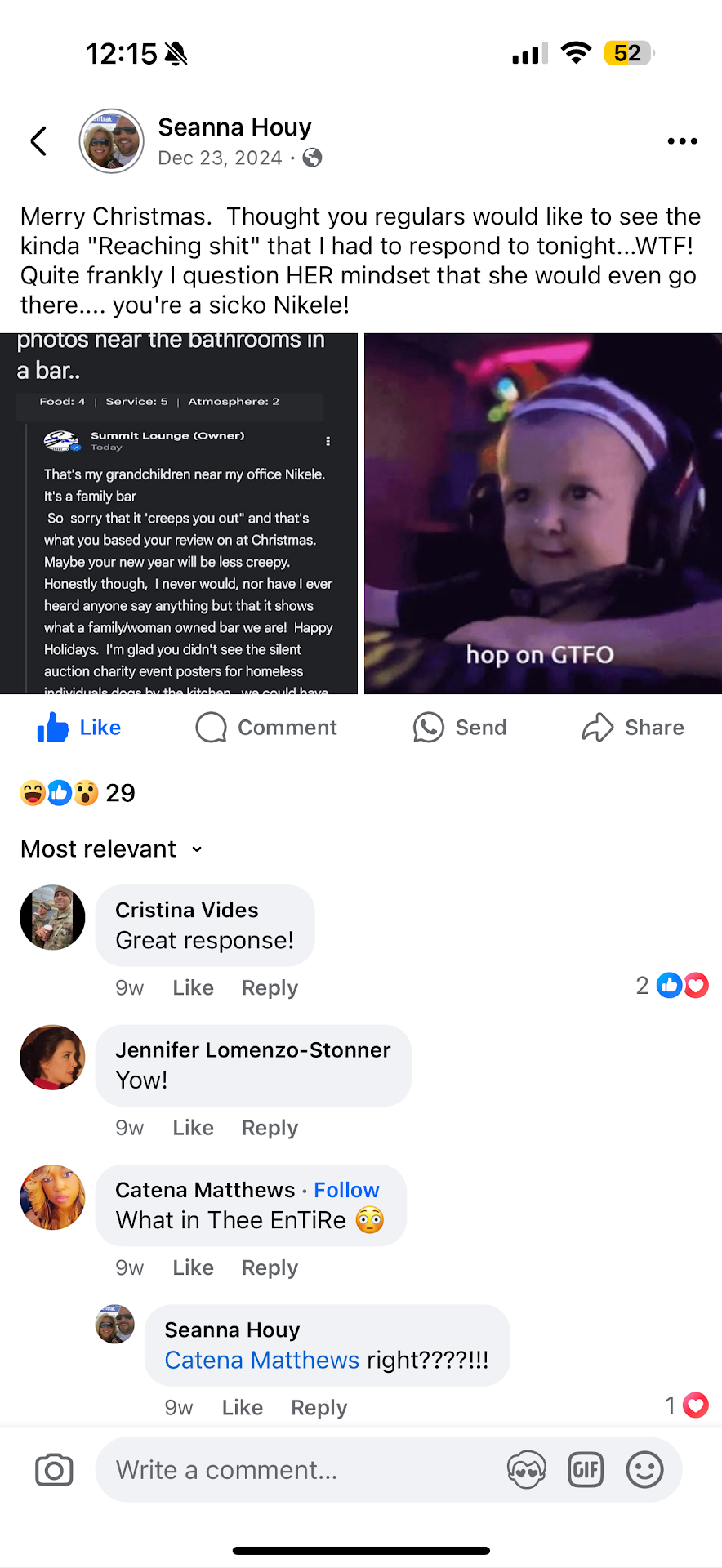 I don’t think I’ve ever met anyone so unprofessional and rude. If you know you have three parties, you know it’s going to be busy. You have two door men, one cook and one DJ. The two bartenders exclusively served the two order lines and that side of the bar and she’s going to tell be they’re busy? Busy? It should’ve been, I’m sorry we didn’t have enough foresight to ensure we have enough bartenders for regular business and three parties. I guess they figured they are making enough money from three parties and they other customers were unnecessary...