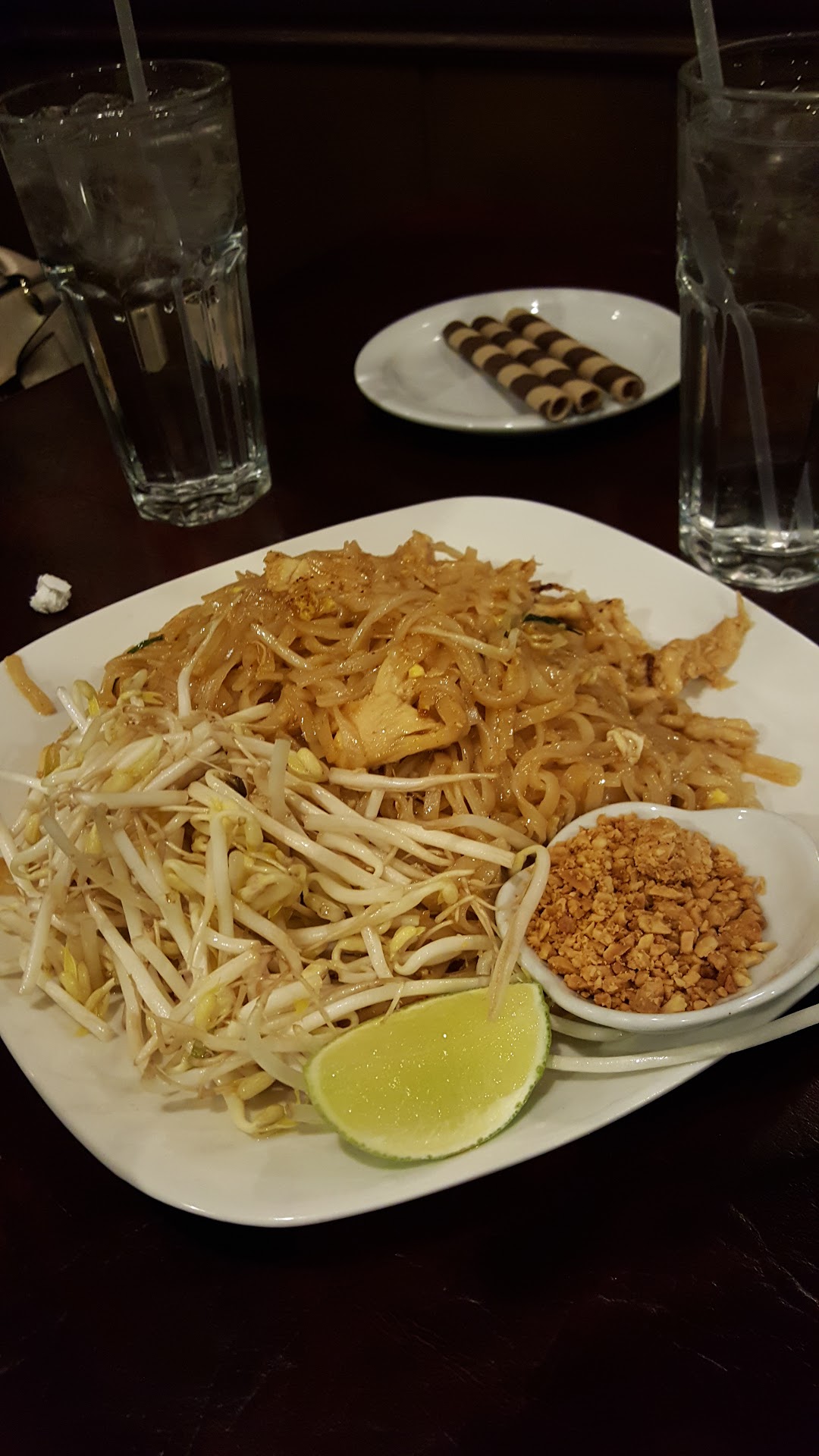 Read moreThis was the type of hole in the wall place that I love with tipping tables on an uneven floor. First the service was excellent. Very nice, informative server. The food was only okay. To start we had spring rolls for an appetizer and they were totally bland and bordering on not good. The sauce for them was gritty and....just bad. For our meals we had a red curry rice dish ordered hot and "Drunken Noodles" ordered medium hot. (We both live for spicy hot foods!) The curry had way too much coconut milk,was also bland, and was only mildly spicy. Not a bad dish but lacking flavor and very disappointing. The drunken noodles had a mostly good flavor but waa oily and so spicy that my nose ran the entire time. It wasn't that exciting spicy flavor I crave but the type of hot that literally sears your throat as it goes down. Each bite was a fire ball landing in my stomach & left me hungry but unable to continue. And the final thing that made the experience a let down, with eyes & nose running profusely, they only had the square home style napkins and i kept having to ask for more to mop up my face. Not a good date-look! I was excited to go because of good reviews but it just didn't do it for us and I don't think we'll even give it a...