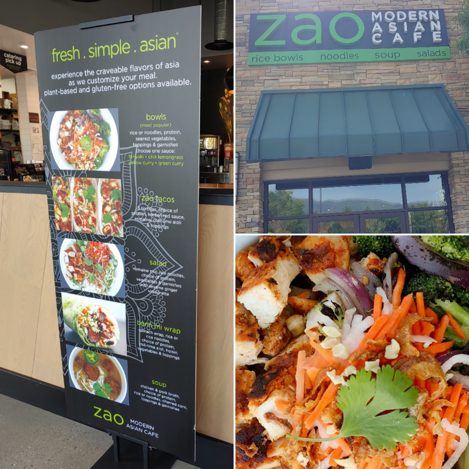 Read moreMy wife and I stopped for the night on our way from visiting our son and his fiancĂŠe in Durango, CO, to our home in the greater Boise area. Zaoâs was just down the street from our hotel. You order at the counter and the staff put your dish together assembly line fashion, then you go find a table. We told the gentleman that greeted us that weâre new to Zaoâs and he was very helpful. The layout is light and airy, with basic metal tables and chairs. The have âfrescasâ to drink: mango, lime aid, cucumber, and watermelon. Unfortunately, the one I wanted , lime aid, was out of order, and the others were just ok. Still, more interesting than a fountain drink.