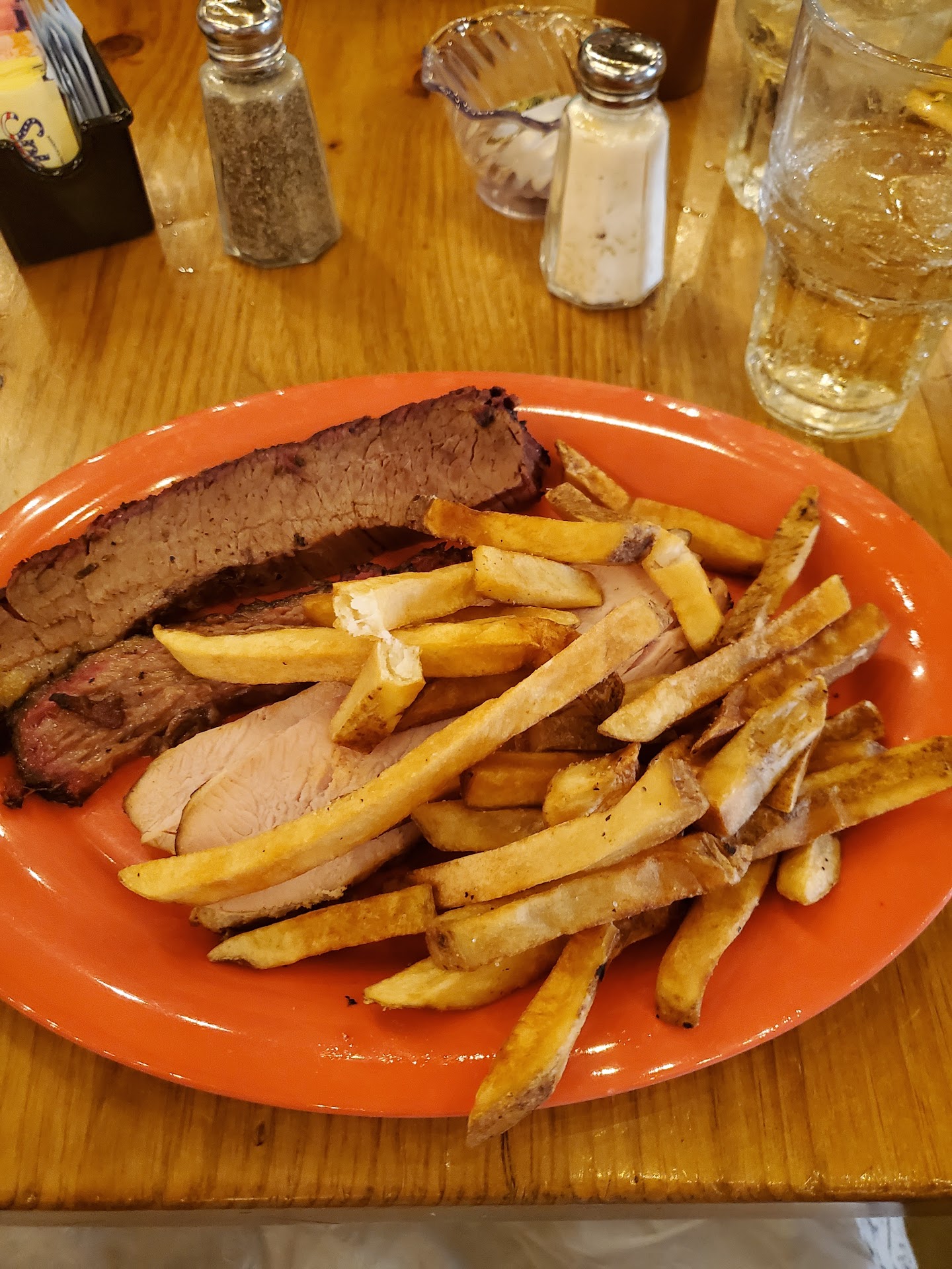 Ā Ā Ā Read moreThis was our second trip to Smokehouse BBQ & Brews at Plain & Fancy Farm. We were big supporters of the move to BBQ by Plain and Fancy back in 2017. The food continues to be of high quality but there are somethings that could use some tweaking. We started our meal with the corn fritters. They were crispy and tasty. The dipping sauce was a commercial package of Mrs. Butterworth's. Disappointing to say the least. This would have been a great place to use their Apple Butter BBQ Sauce. Unfortunately it wasn't available at this time. We both ordered the make your own brisket sandwich. The brisket was done perfectly. Tender and juicy with a great smoke ring. I ordered mine with the Horseradish American Cheese. after all what goes better with beef than horseradish. However, this particular cheese added nothing to the sandwich, save the $1.00. I ordered the french fries and my wife ordered the mashed potatoes. Both were great accompaniments. The mashed came with gravy on the side and were creamy and tasty. The fries were cooked perfectly, crunchy on the outside and a nice chewy center. We both ordered the White Horse and the Smoky BBQ sauces. The Smoky was great, it added a nice kick to the sandwich, without overpowering the brisket. The White Horse was disappointing. It is supposed to be a mayo sauce with horseradish. It was grainy, and the vinegar overpowered the all of the other ingredients. It added nothing to the brisket. this would have been the perfect place for their Carolina Mustard BBQ sauce. Again, it wasn't available at this time. Top it off with a couple of sodas and it was a good meal, just not a great meal.